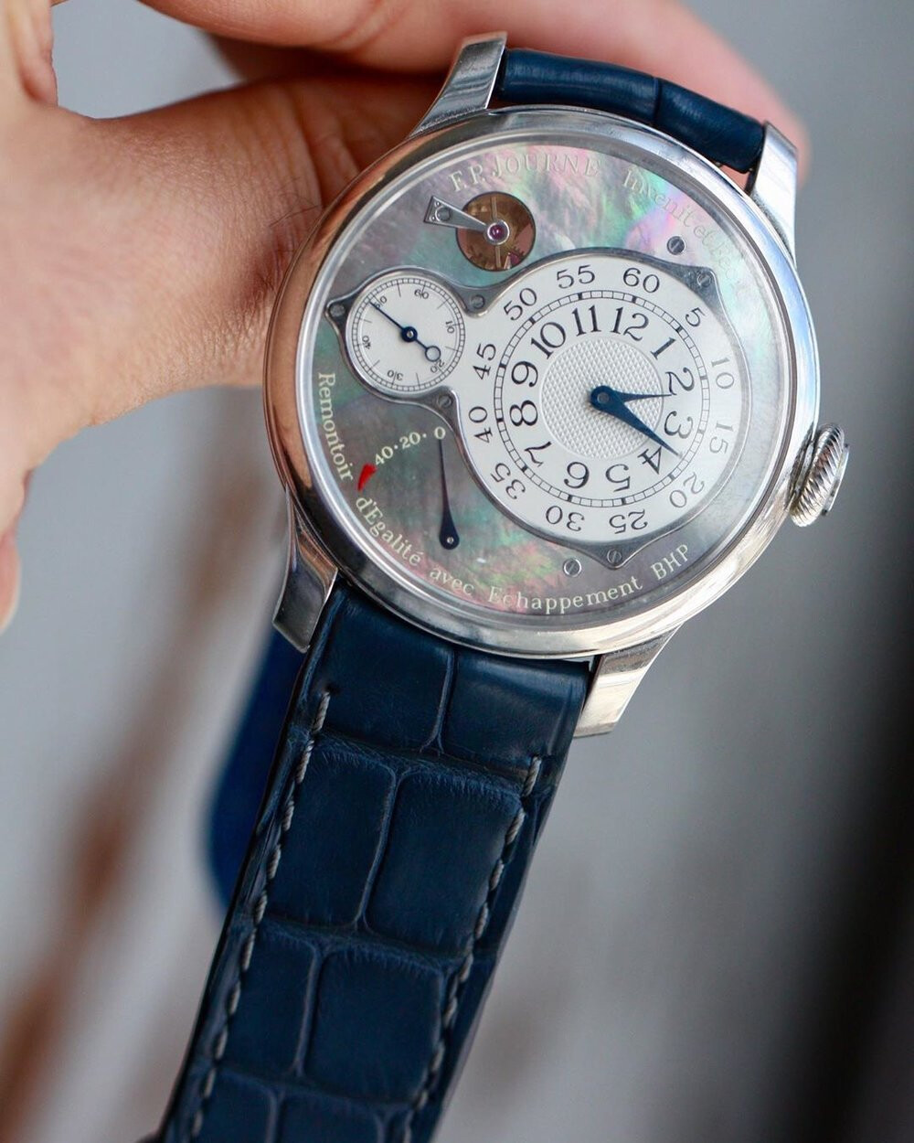 Vind t moeilijk bij dit horloge wat van grijs naar bruin kleurt of andersom afhankelijk van de lichtinval. Een eenkennig horloge is mijn mening.