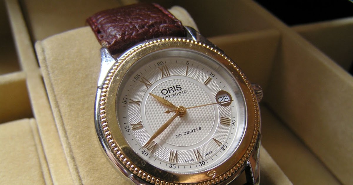 Het is zeker een Oris uit de jaren '90. Met denkelijk een ETA 2824 uurwerk erin. Uiteraard een automaat. Dat is wat ik kon zien. Op internet staat verder dat de bezel van massief goud zou zijn, dus niet verguld. Dat verhoogt de waarde uiteraard. Ik heb hem in mijn Oris boeken niet terug kunnen vinden. Dat zegt op zich niet veel. Sowieso een zeer mooi en goed horloge dus!