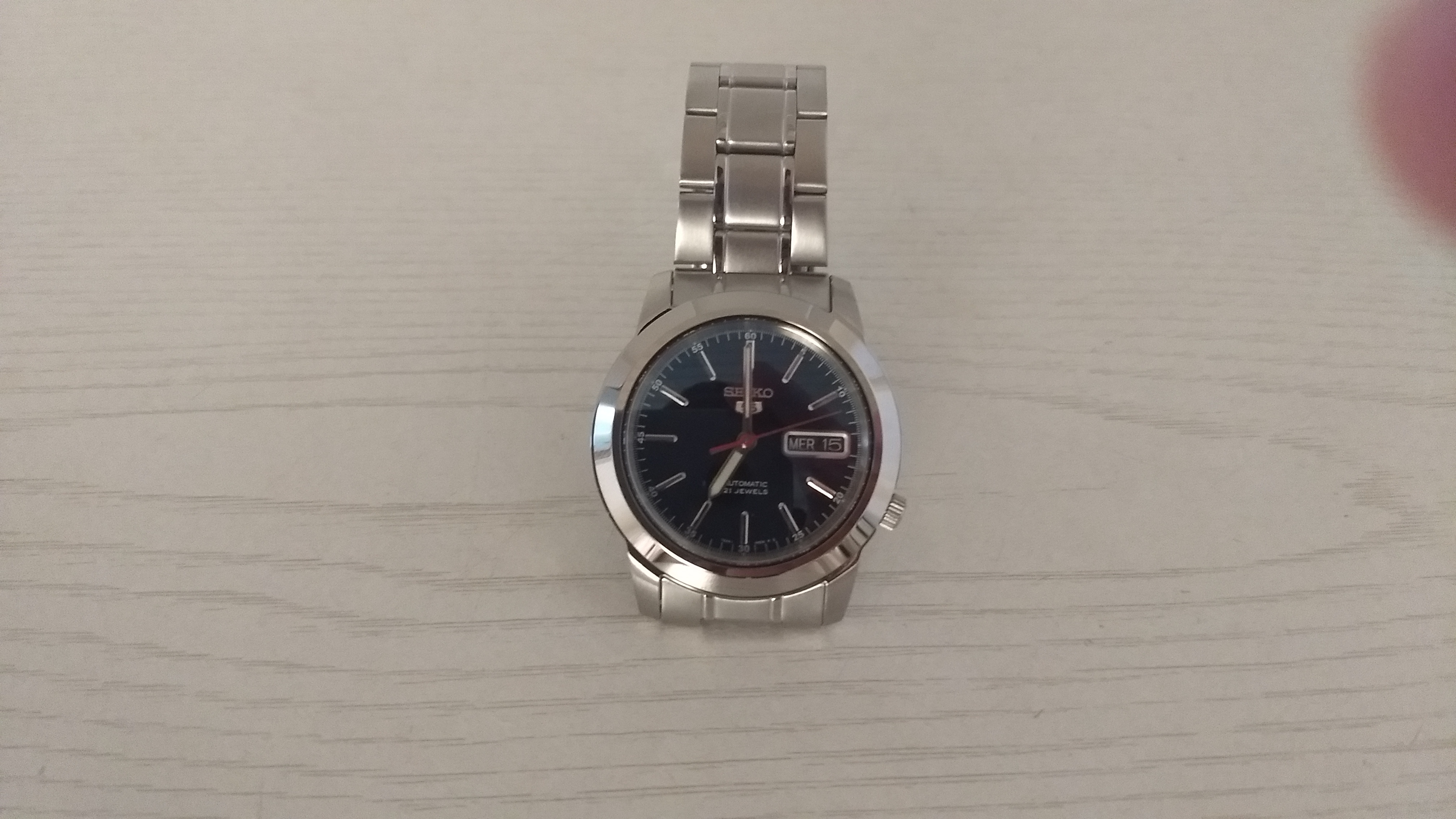 Aangezien de wijzerplaat niet helemaal zwart is maar ook een tint blauw heeft zal een zwart bandje niet mooi zijn