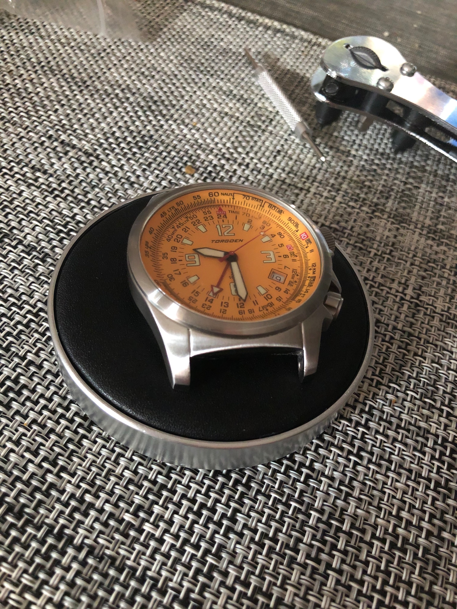 EDIT: inderdaad heeft die cheapo gele unit nu een luchtbel nadat ik 'm op het koude bureau had gelegd. Je moet dit dus alleen uitvoeren bij de beter waterdichte horloges.