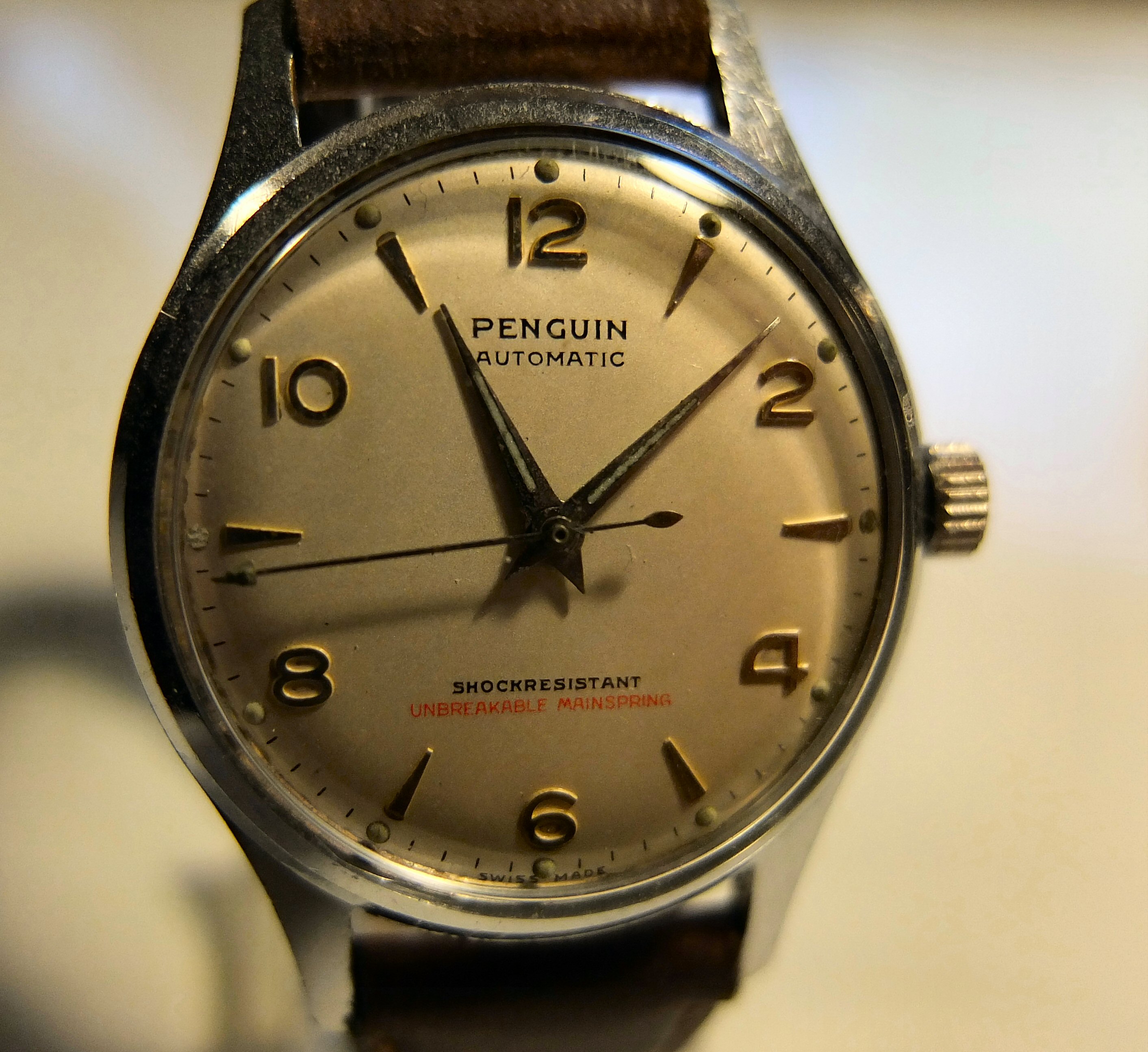 Ik daag uit, I dare you, degene die in het bezit is van een of meer pinguin horloges. Dus niet de zoveelste poging tot 'show je horloge met een… ’ in dit geval Pinguïn, maar echt een horloge met ofwel het merk Pinguin ofwel een pinguin wijzerplaat ofwel in de vorm van zo’n beest. Graag een verhaal erbij hoe je er aangekomen bent en/of waarom je zo’n horloge hebt.
