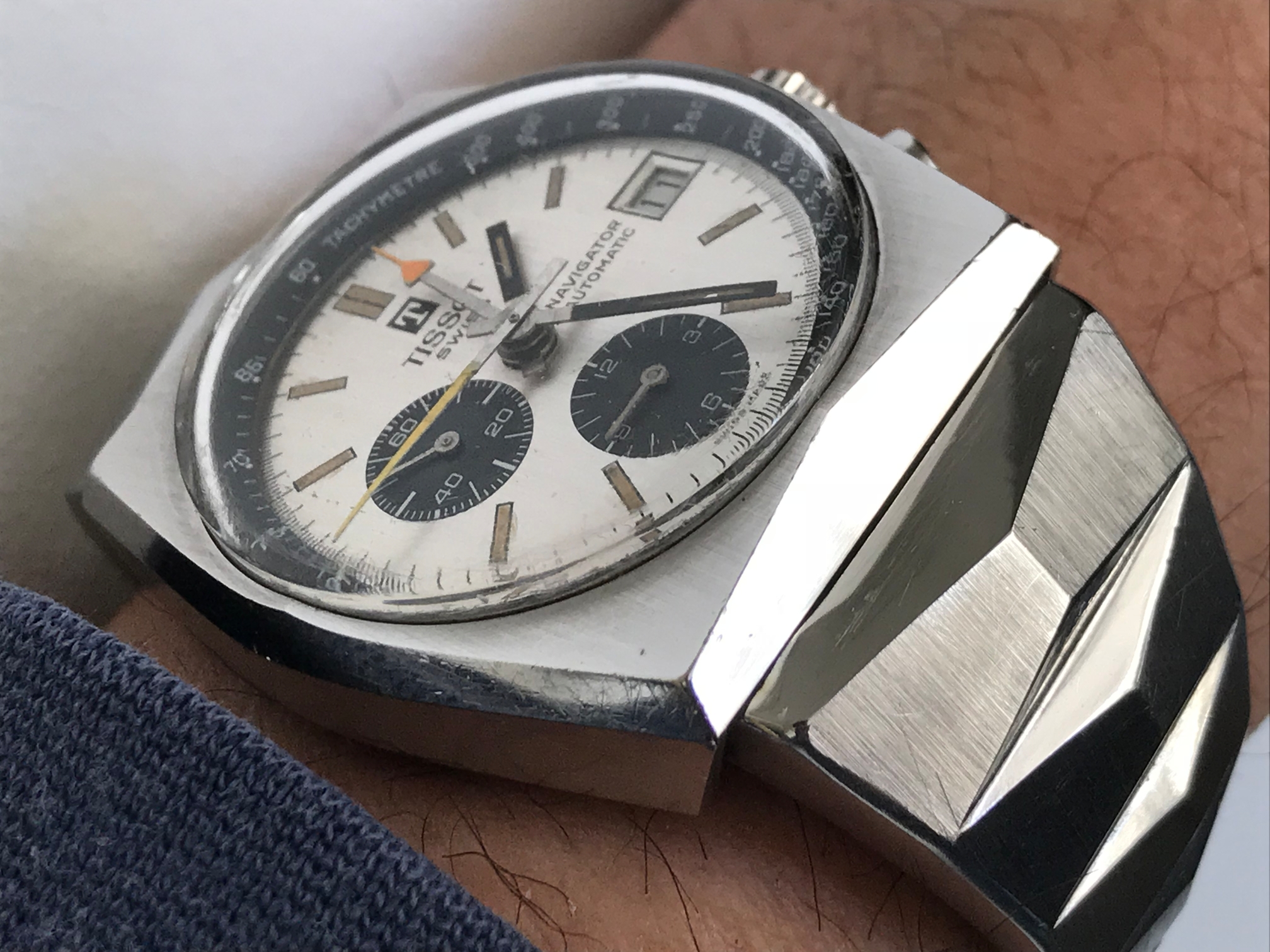 Toen kwam er een Pulsar chronograaf die haast net zo dik als mijn pols was…maar kijk nou even naar die vormen, gebrushte wijzers en die achterlijk grote kroon. Heb hem nog altijd. Gaat ook niet weg denk ik.