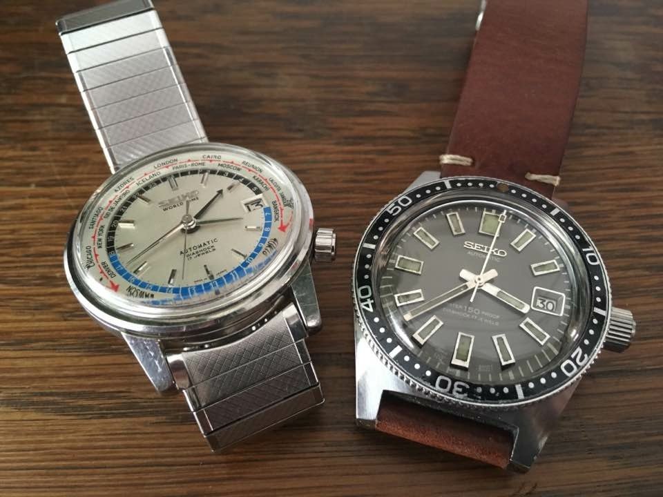 Eigenlijk meer terugkopen voor die prijs en ook wel in die staat: mijn beide 6217 Seiko’s. De World Timer als full set en op originele band.