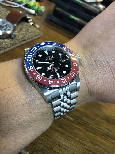 Ben op zoek naar een GMT. Ik heb ooit een Davosa Ternos Pepsi gmt gehad. Dat was (met 42mm) iets te groot en te bling bling. En het was een 1:1 hommage … beetje fout dus. Zie ik nu ook in.