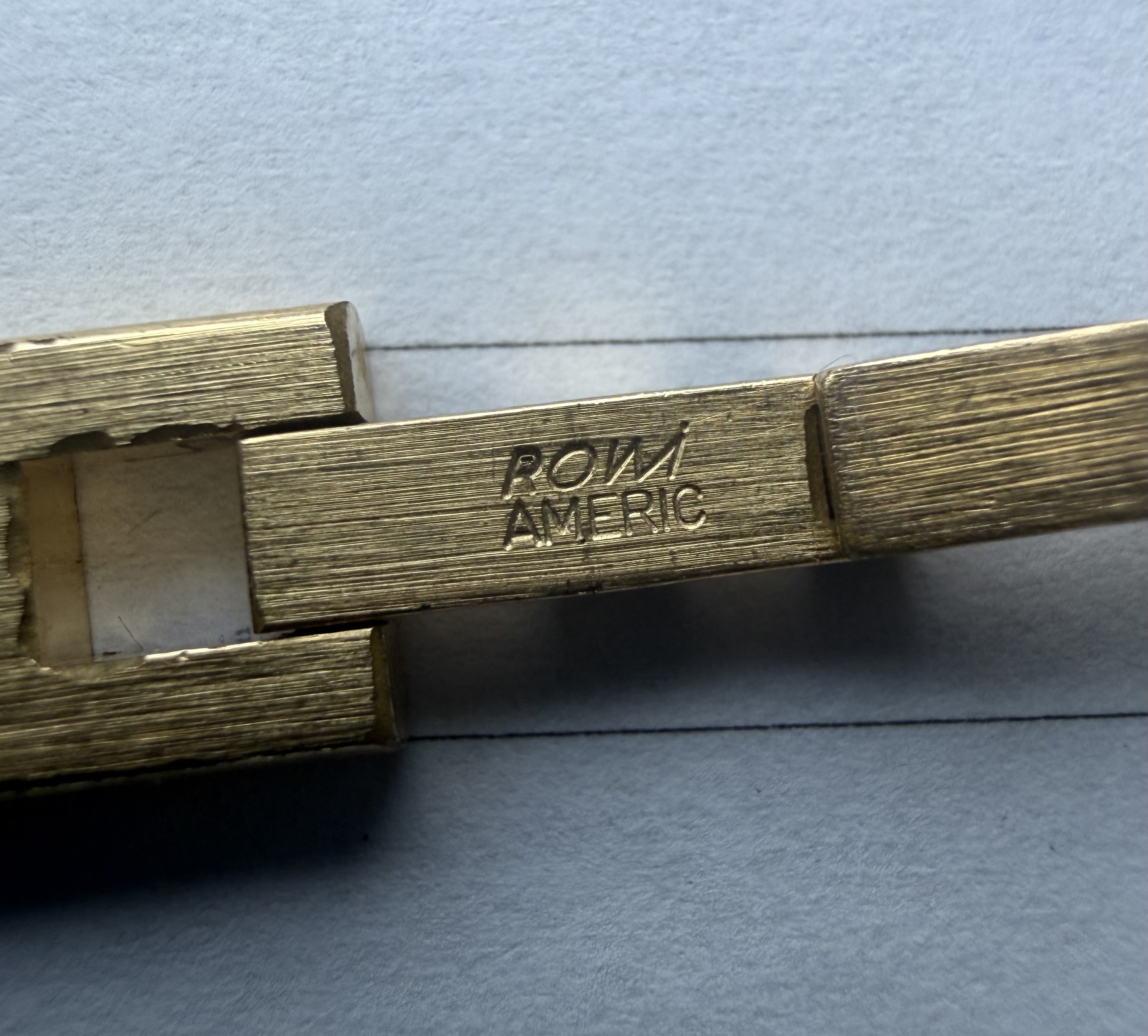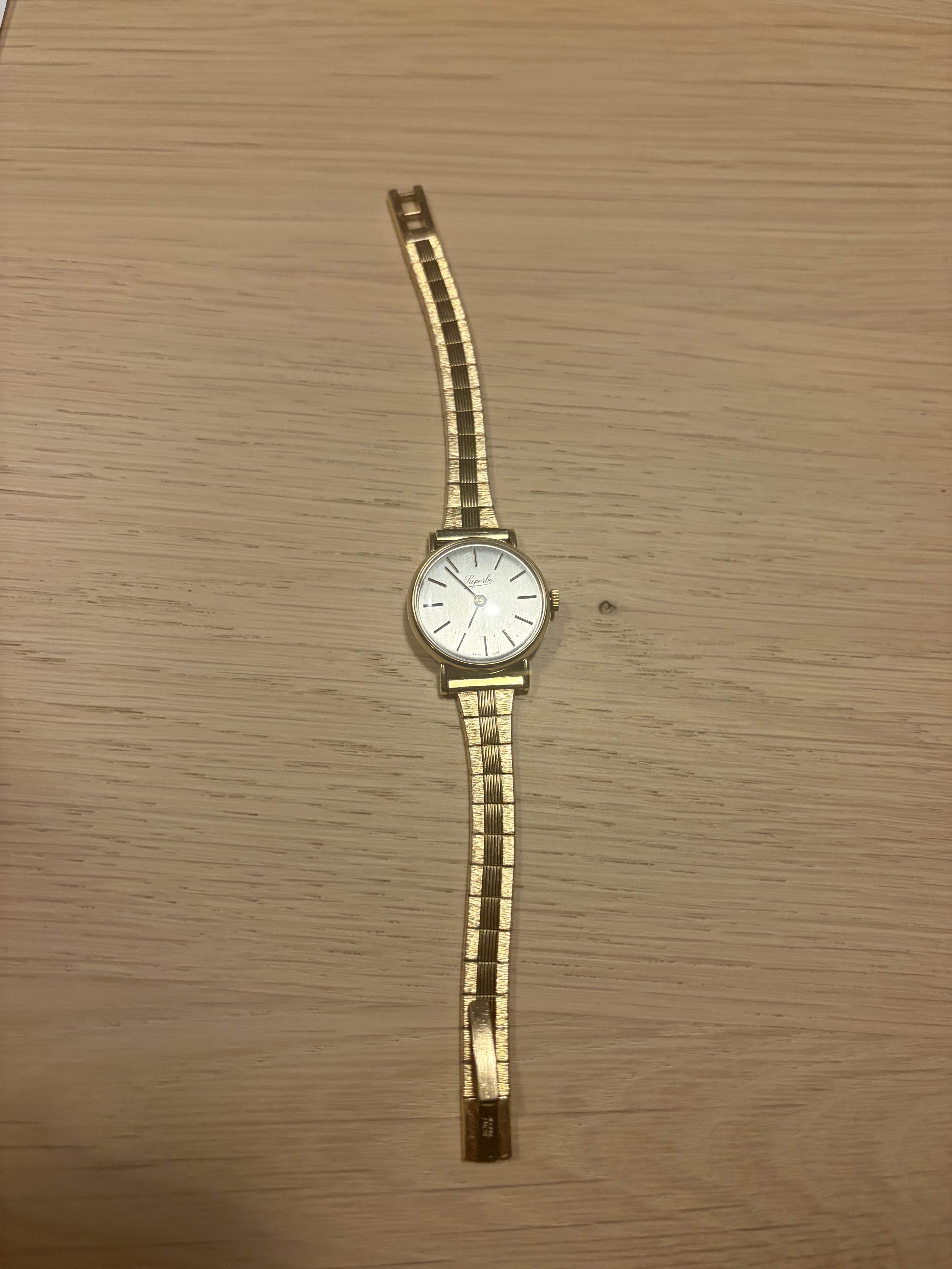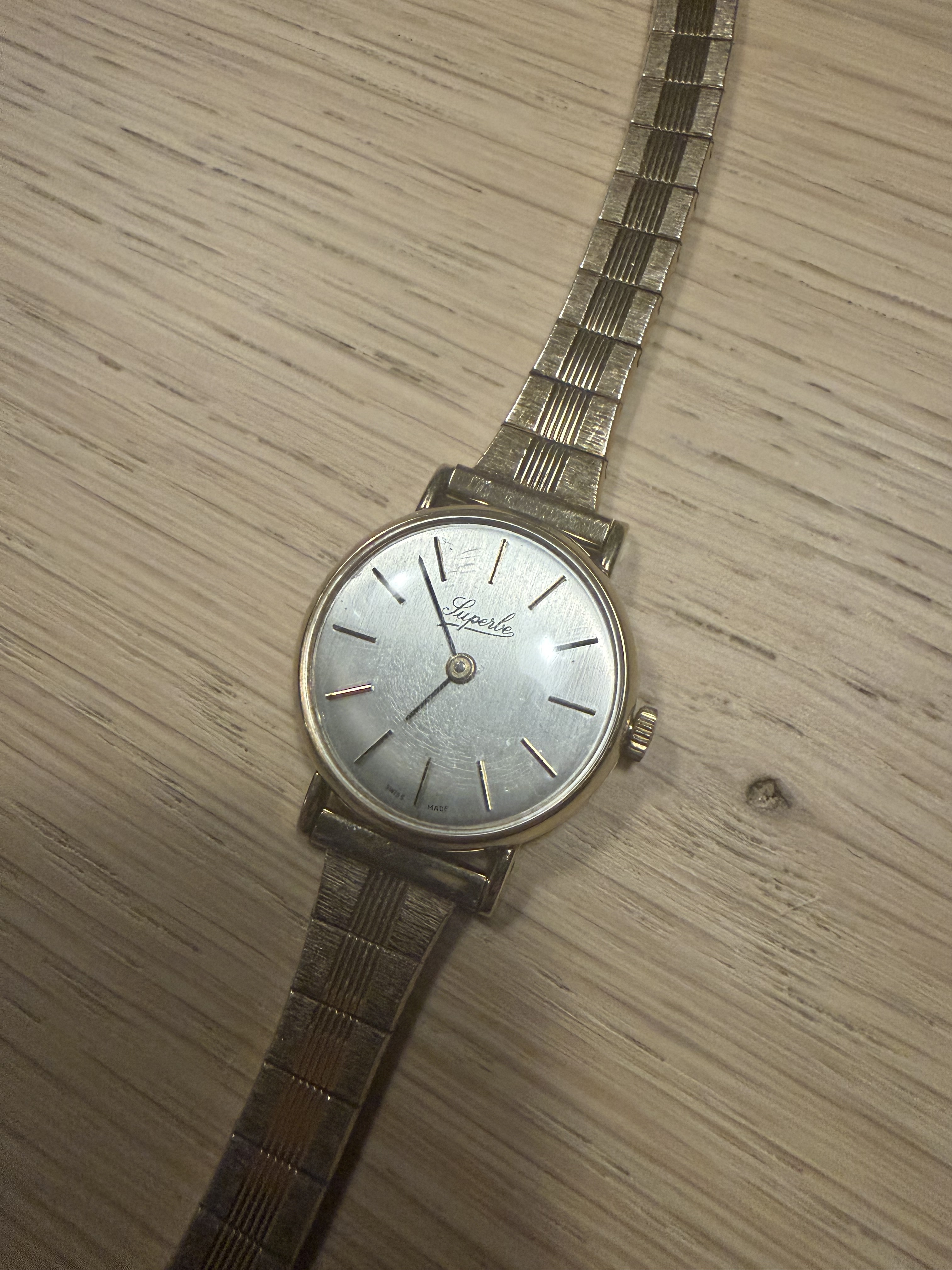 Nee correct gelezen Rowi is Rodi & Wienenberger GmbH van de Fixoflex horloge band, daarvan hebben ze er heel veel verkocht in de vorige eeuw. Het goud is hier van de uiteindes afgesleten; gold plated dus zo te zien. Duits als het merk Superbe, dus dat kan kloppen. Kast van het horloge is wel 14K.