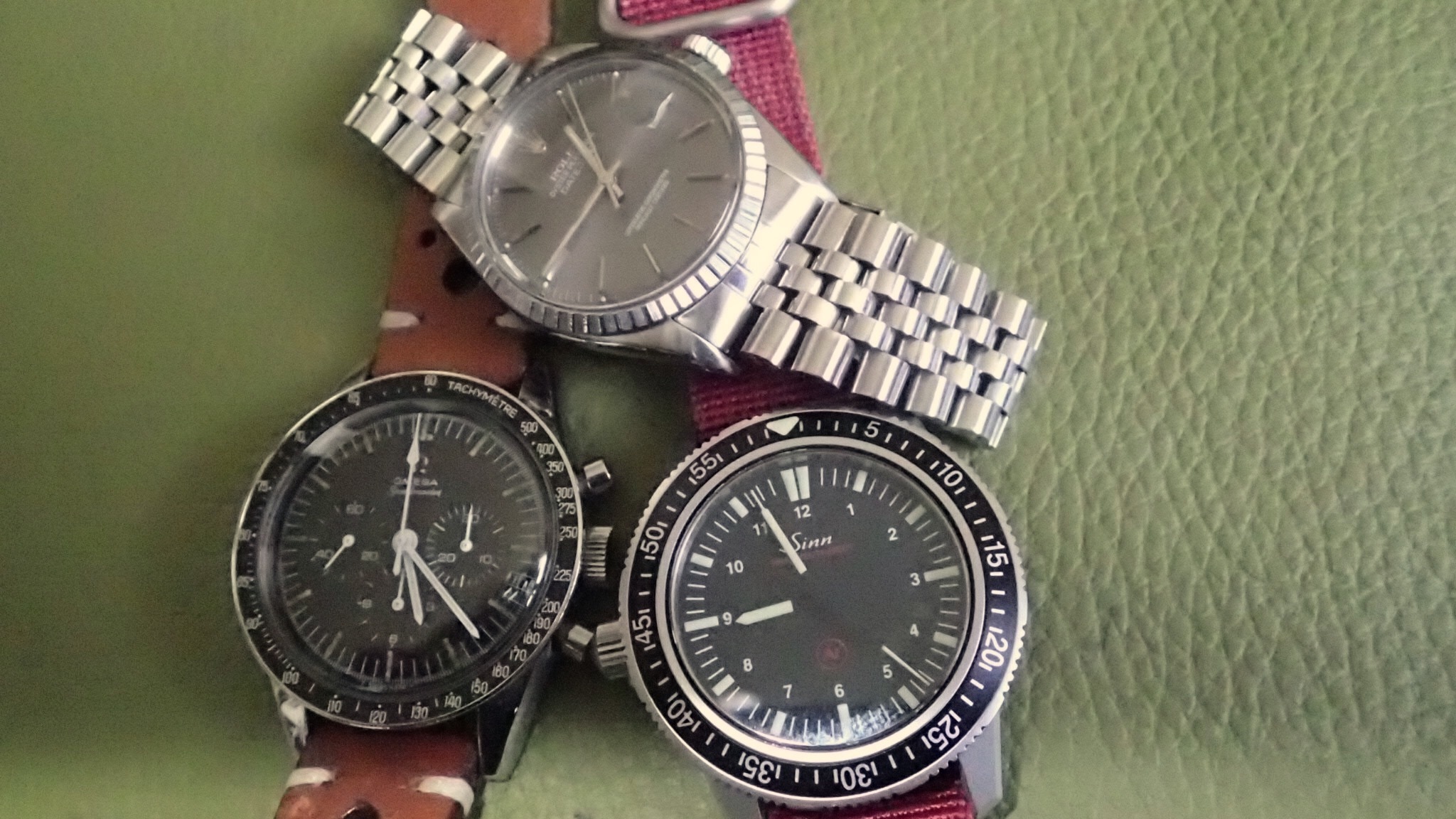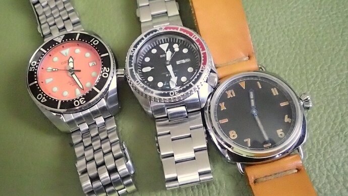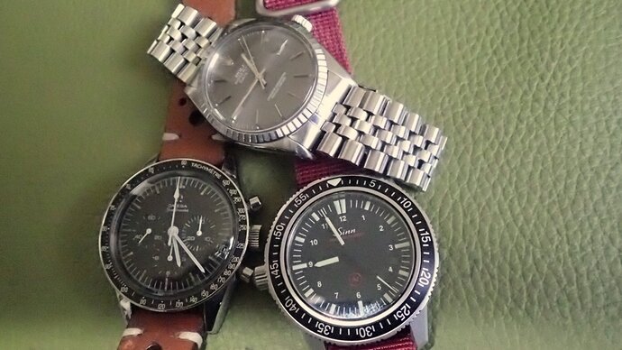 Merk ik. Ook al omdat ik de meeste niet meer in huis heb maar in een safe-loket. In huis heb ik het goedkope spul. Mijn projectjes, foto hieronder. De rest elders, gaan op 3 blijvers na, weg. Wel hoop ik nog dat Stephan mij zijn pastel blauwe Halios met bezel verkoopt