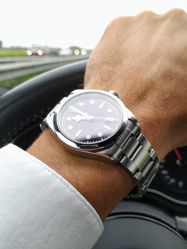 Maar goed, het enige waar ik nog wat huiverig voor ben is de afwezigheid van ar coating. Ik heb ooit een Glycine gehad (ik weet, ander segment maar toch) die buitenshuis niet af te lezen was. Maar eens langs de AD. De 36 en 41 passen en kijken hoe het staat met de (ont-)spiegeling.