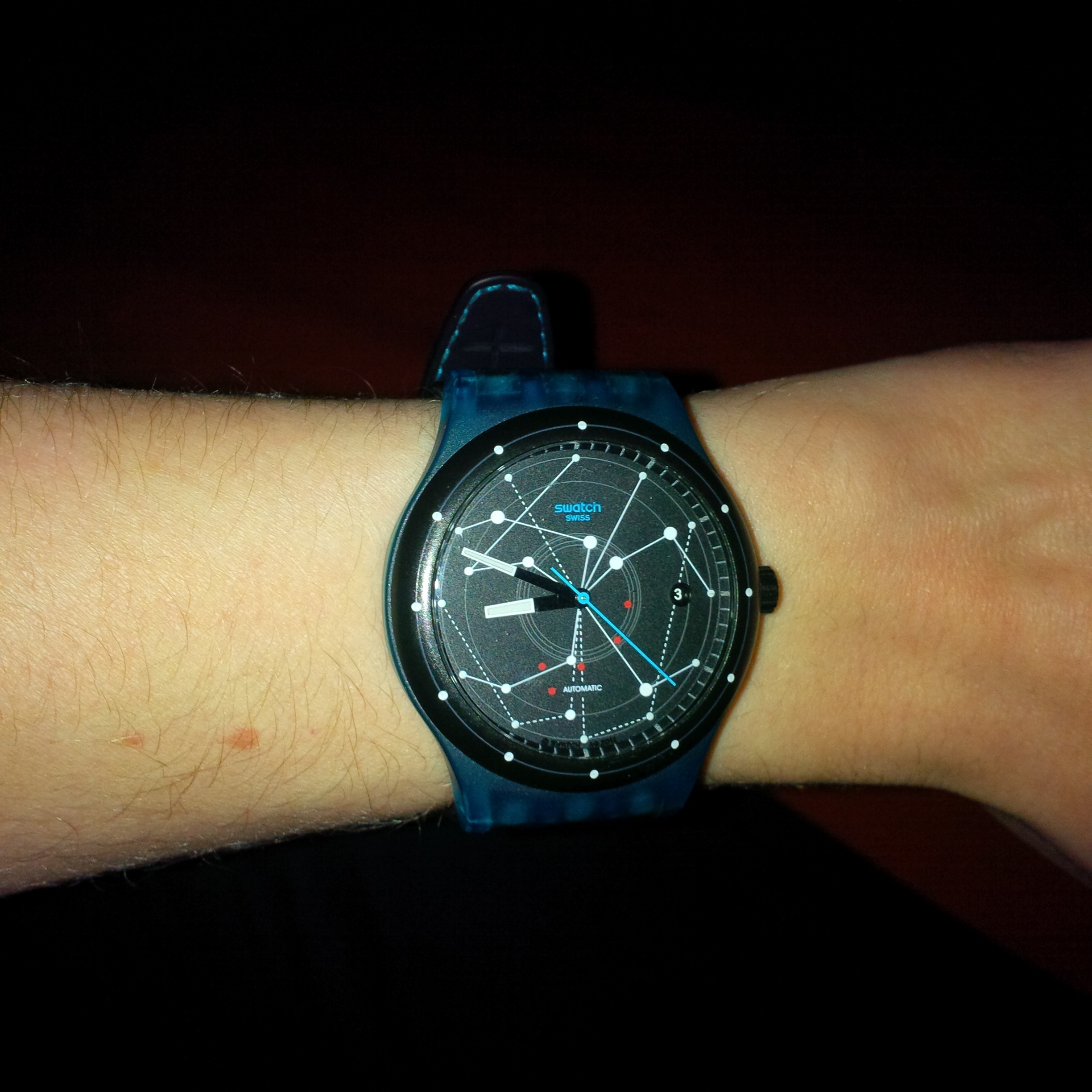 En dit is mijn pols met de Swatch sistem 51. Dan hebben jullie even daar ook een beeld van en denk dat ook gelijk duidelijk is dat t bij mij niet te groot moet worden…