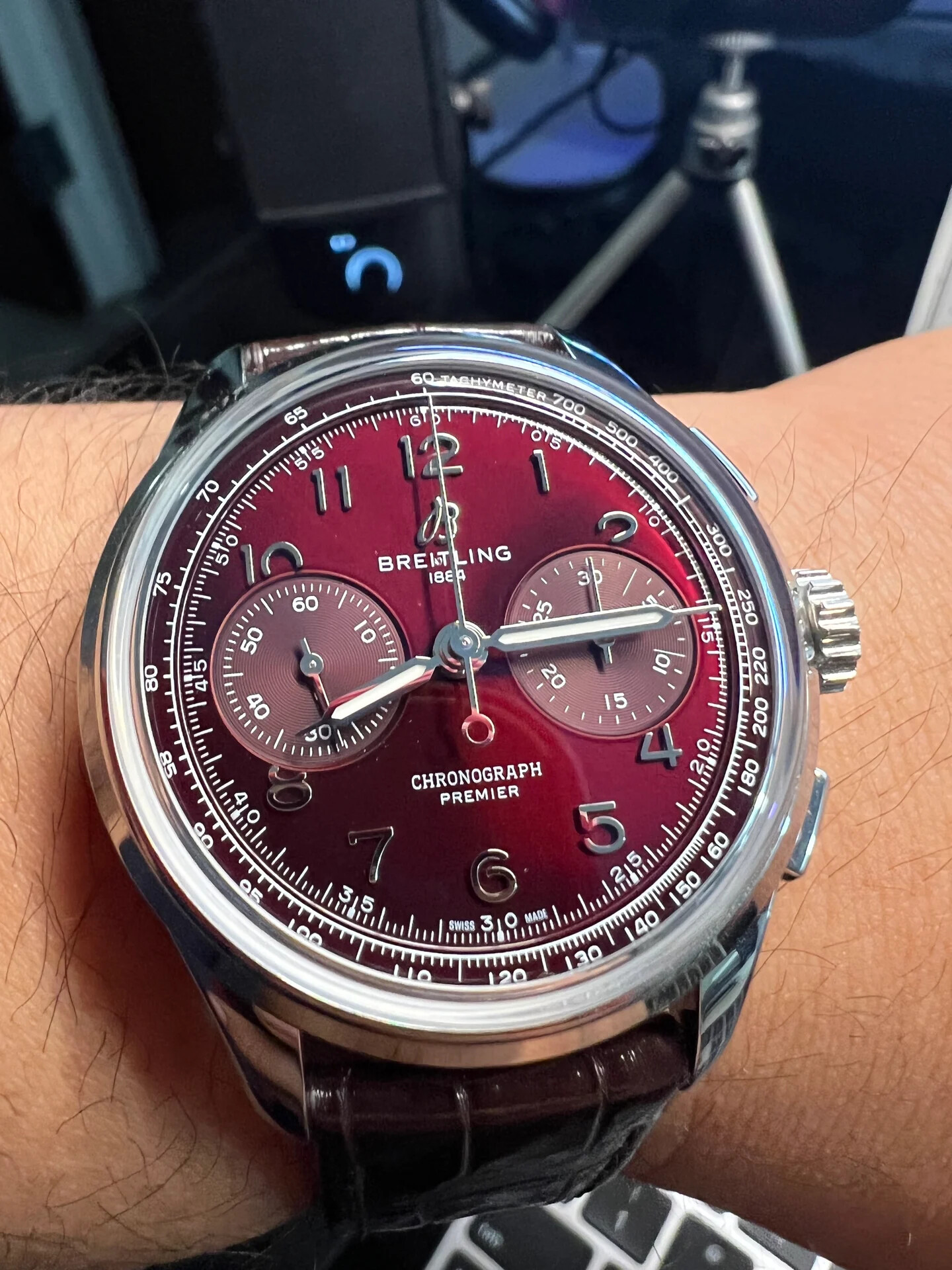 Mooi horloge. Erg duur. Als ik zo veel geld aan een chronograaf uit zou geven zou het wellicht een bloedrode Breitling B09 zijn: