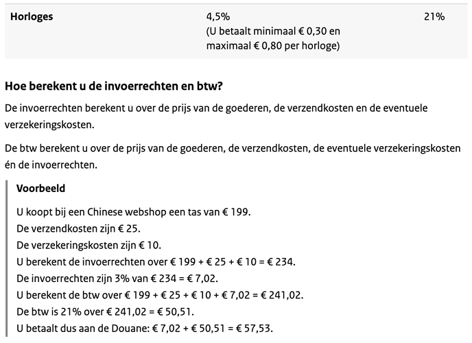 Echter werd mij ook zo’n 12,50 in rekening gebracht voor de import van een horloge (dit zou volgens de website van de douane en volgens de reacties in dit topic een maximum hebben van 0,80 euro)