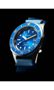 De blauwe Squale met gepolijste kast en sunburst plaat schreeuwt gewoon late 60’s en 70’s en dat vind ik nou juist zo gaaf aan dat horloge.