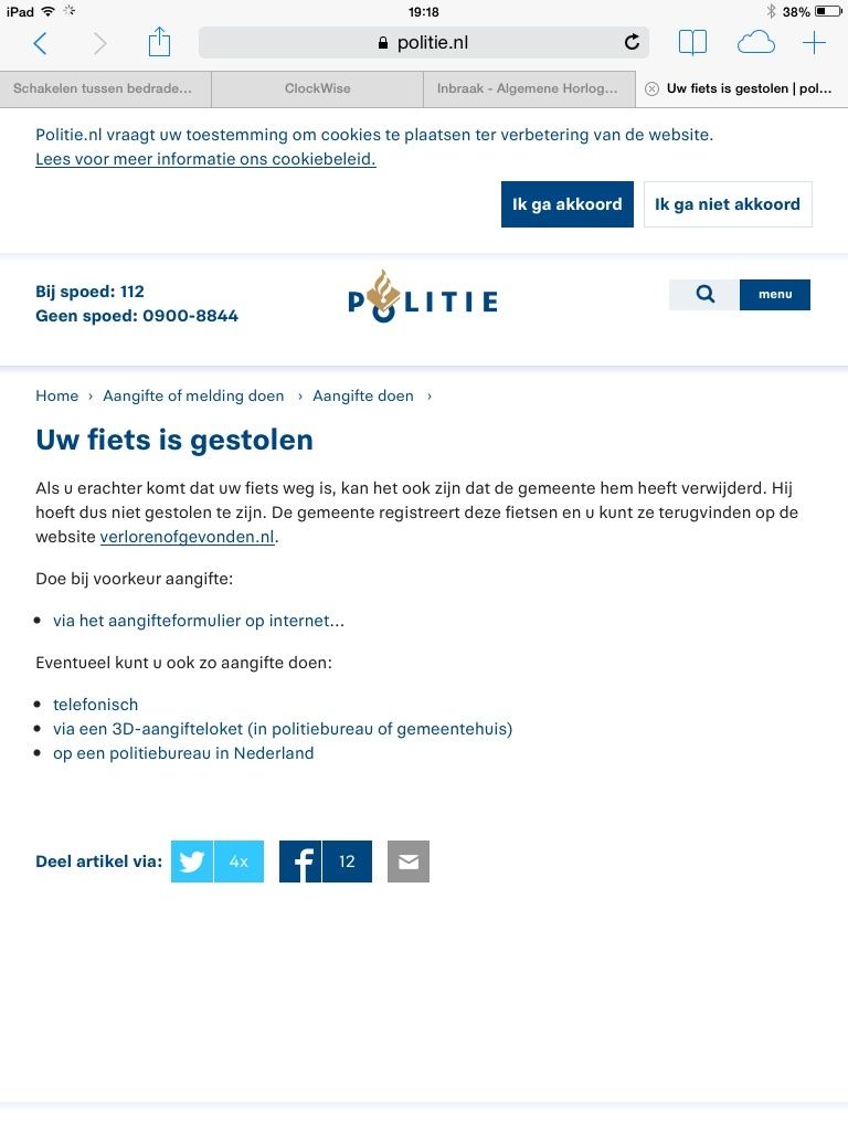 Het gaat hier over inbraken. Voor een fiets diefstal aangifte moet je een afspraak maken , dat doet geen hond, of het moet voor je verzekering zijn