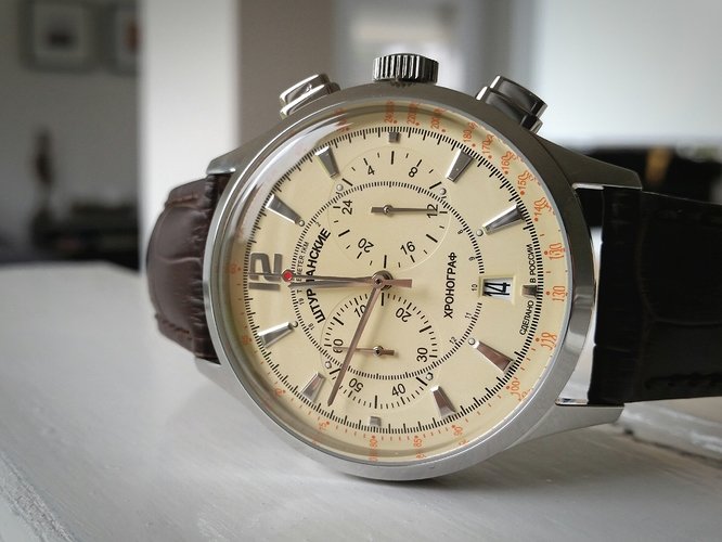 Ik vind het een leuk horloge, maar met de originele Strela die ik eerder had heeft het weinig te maken. Vooral de diameter (42 t.o. 38 mm) is daar debet aan. Ook is het horloge vrij licht door het meca quartz uurwerk. Het uurwerk is wel erg gaaf moet ik zeggen, qua functionaliteit en ‘gevoel’ erg vergelijkbaar met een mechanische chronograaf. De afwerking is inderdaad goed, m.u.v. de band. Ik zoek hier nog een mooie vervanger voor. Overigens is de band maat niet de geadverteerde 20mm maar 22mm.
