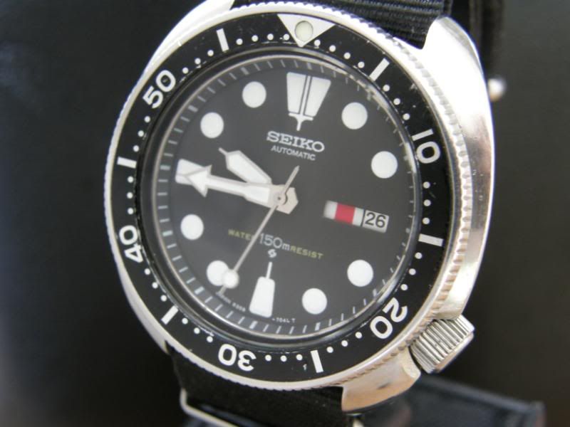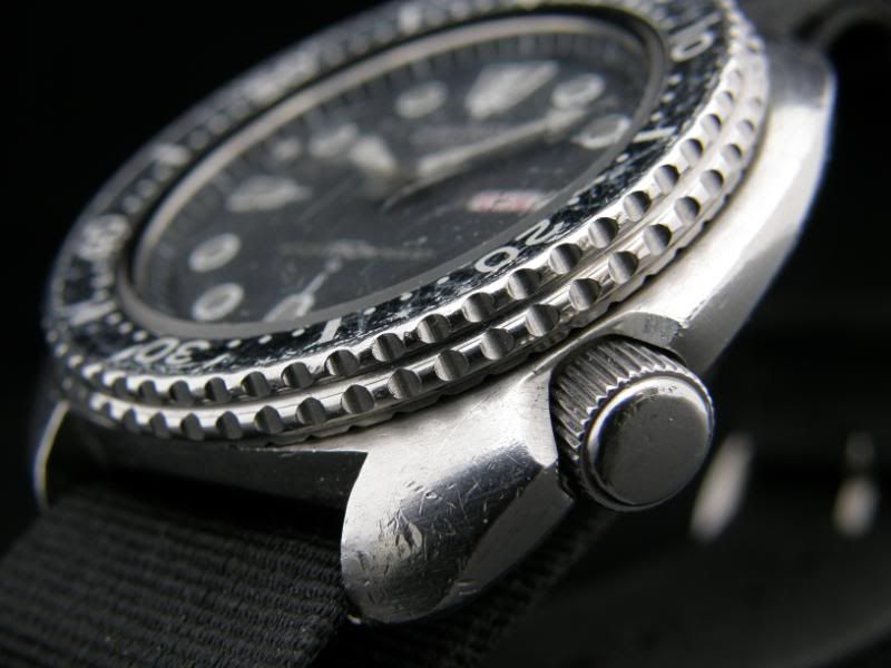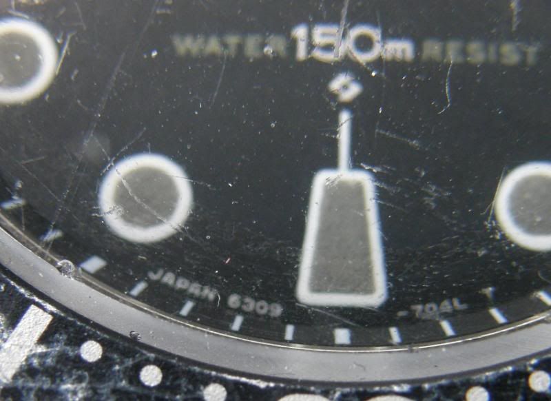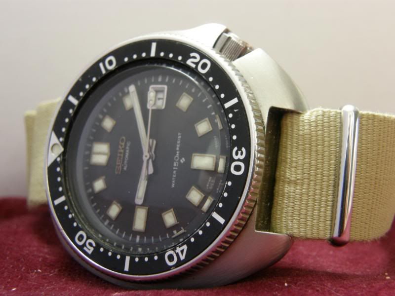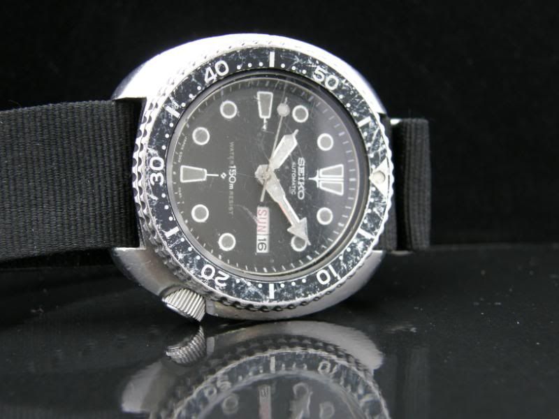 Als er een nieuw glaasje op zit is dit echt een gave wijzerplaat. Was de eerste die ik zag met donkergrijs egaal verkleurde lume. Geen aftermarket meuk uit Fantazië, maar alles origineel. Hup Krabong, ff de andere gave bezel erop leggen (ik weet dat je liever deze zwaar gebruikte ziet gheghe), ander glaasje (ook dat heb je liever vol krassen) en dan weer foto’s maken Was gezellig!