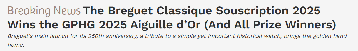 [Breaking News: The Breguet Classique Souscription 2025 Wins the GPHG 2025