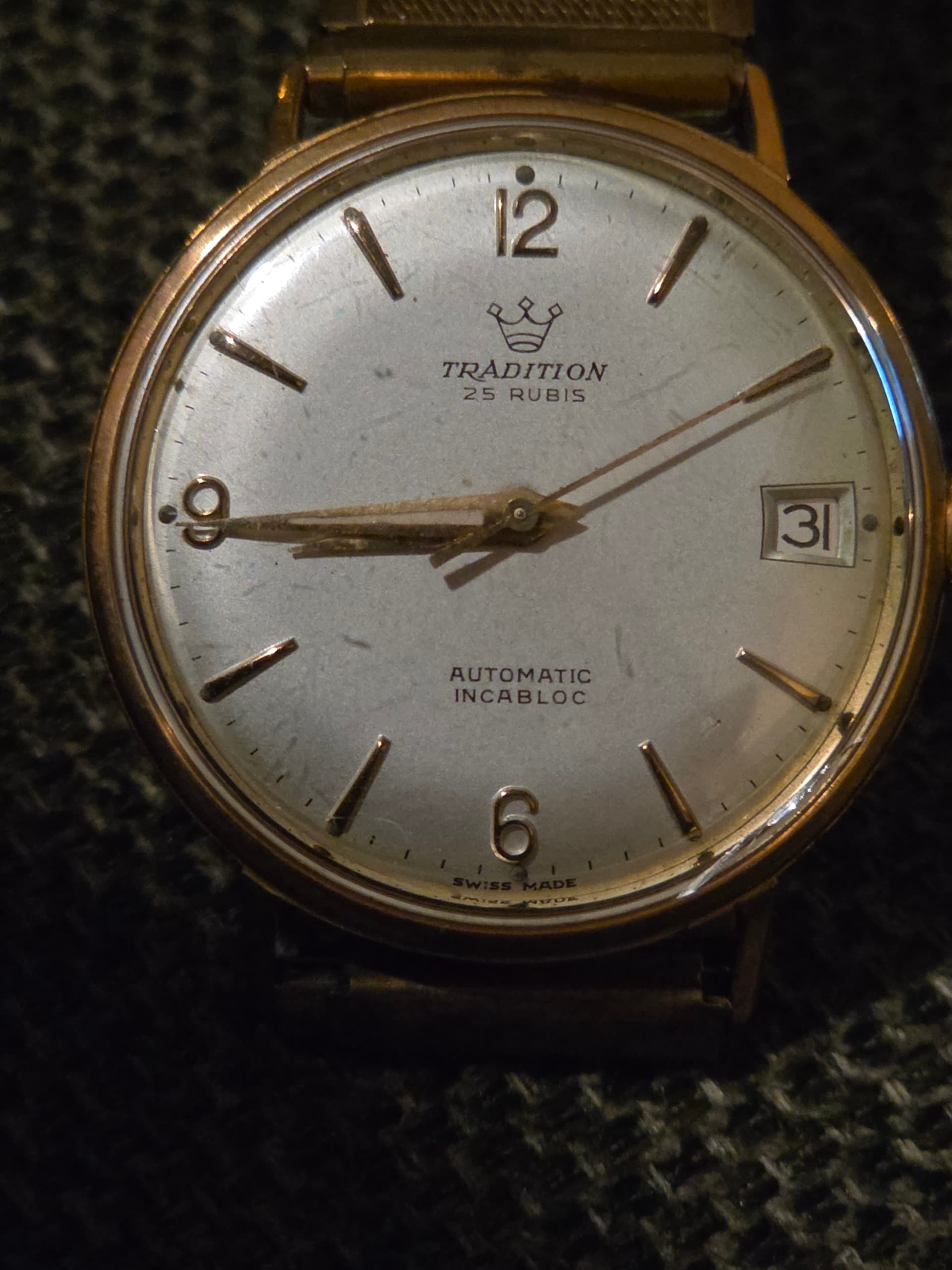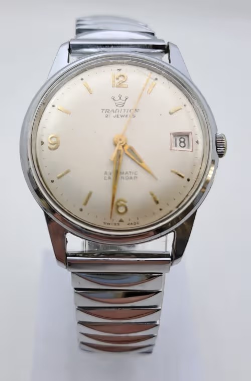 Soortgelijke kroon, hier met een ETA 2778 day-date in een Tradition 25 jewels automatic. Je had ze ook met o.a. 2789 en vast nog wat meer.