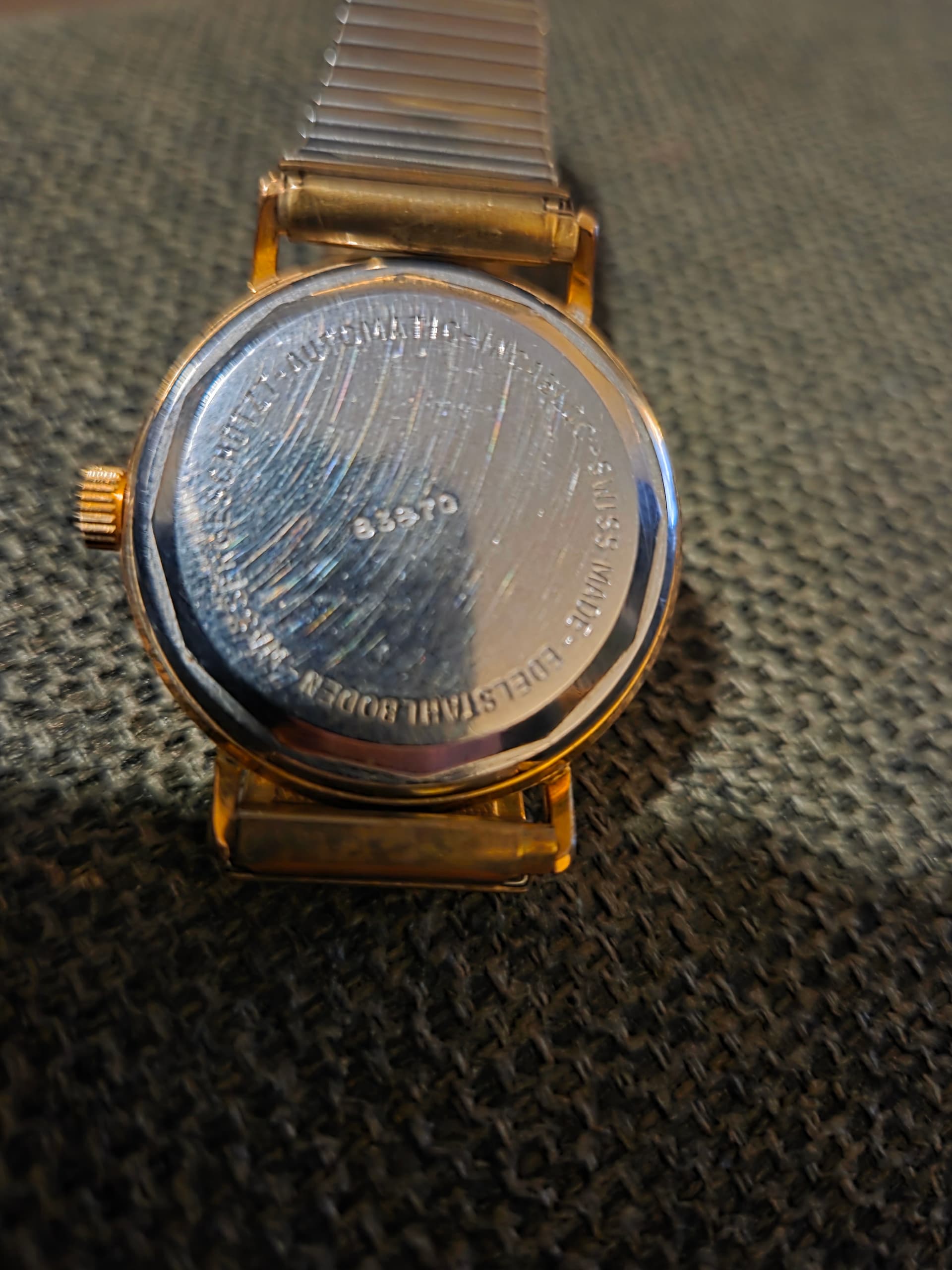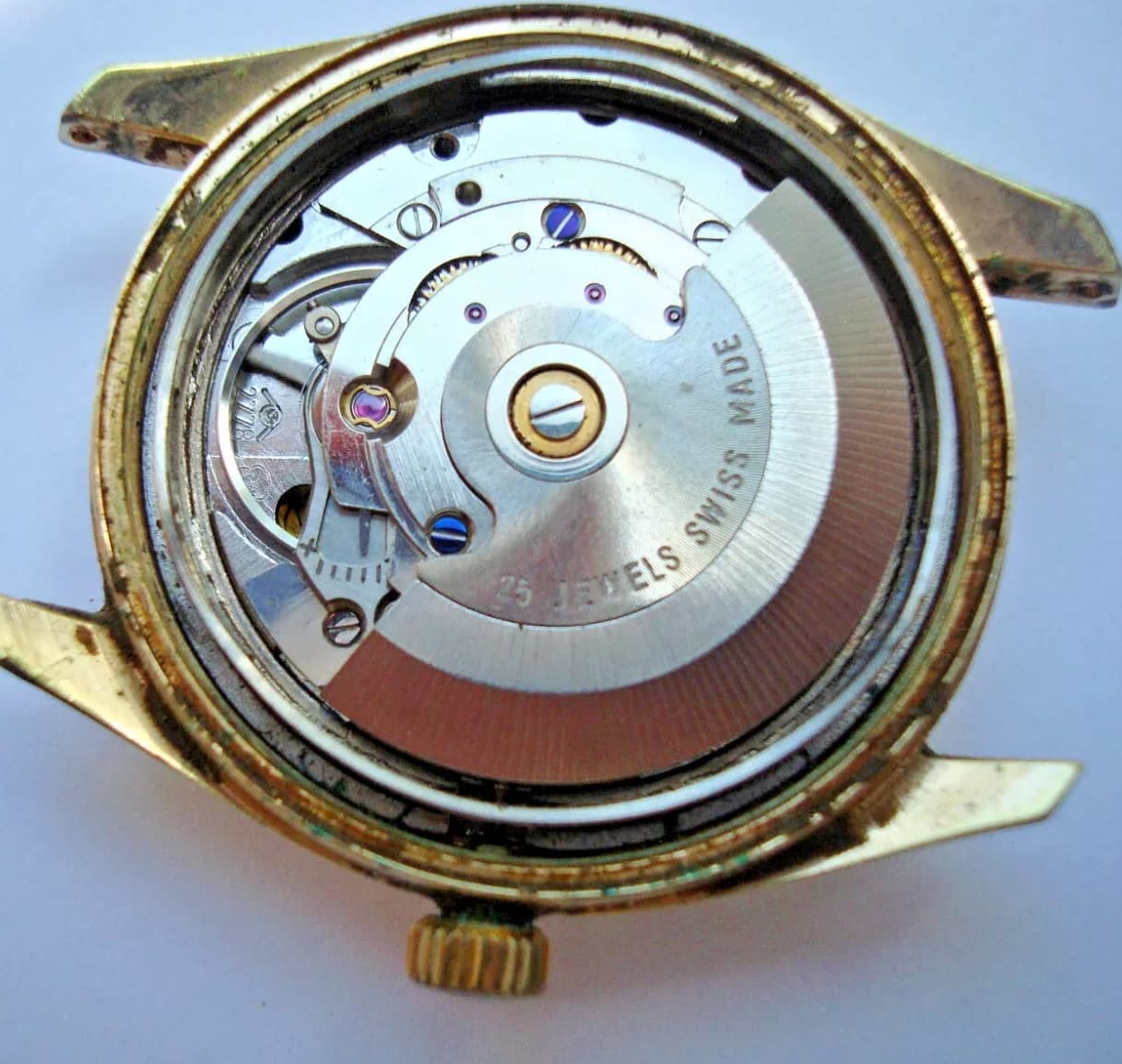 Bij 25 stenen denk ik meteen aan een 2824-2; maar daar is deze te vroeg voor. Zonder het uurwerk te kunnen zien weten we echt bijna niks nog. Nou ja, jaren '60 in elk geval; misschien nog net '59 of zo.