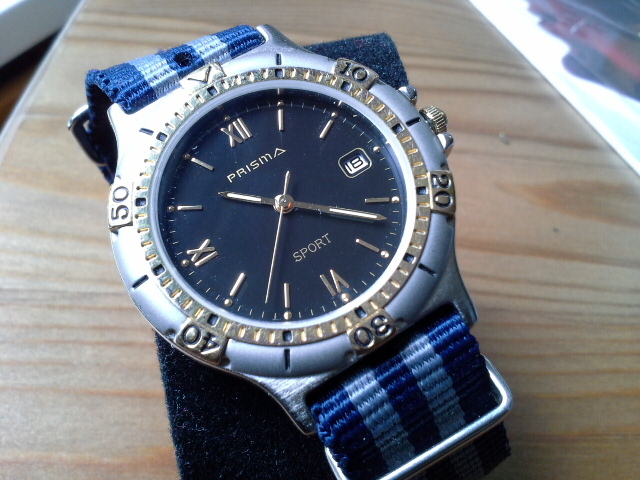 het ouderwetse leren bandje vervangen door een 2 kleurige Natoband