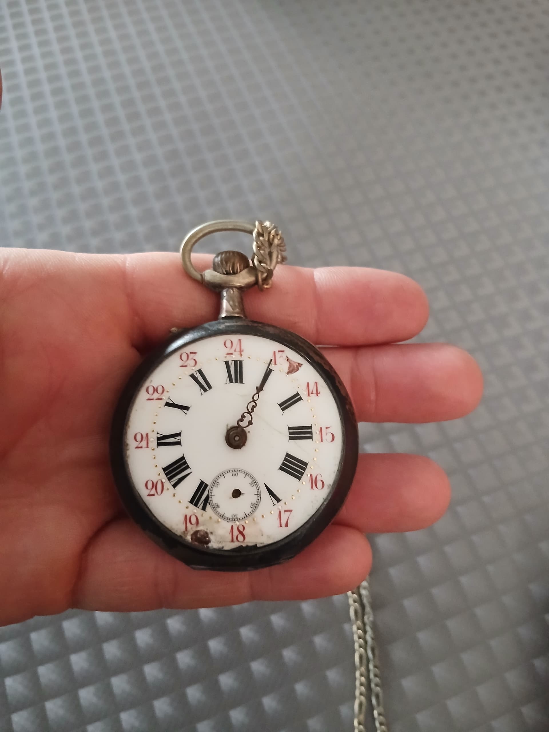 Dag waarde vrienden van de tijd, ik ging vandaag op de koffie bij mijn Oma, en ze haalde een zakhorloge uit de kast, van haar vader. Mijn Oma is 92 jaar, dus oud is deze zakhorloge zeker. Maar kan iemand daar iets meer over vertellen?