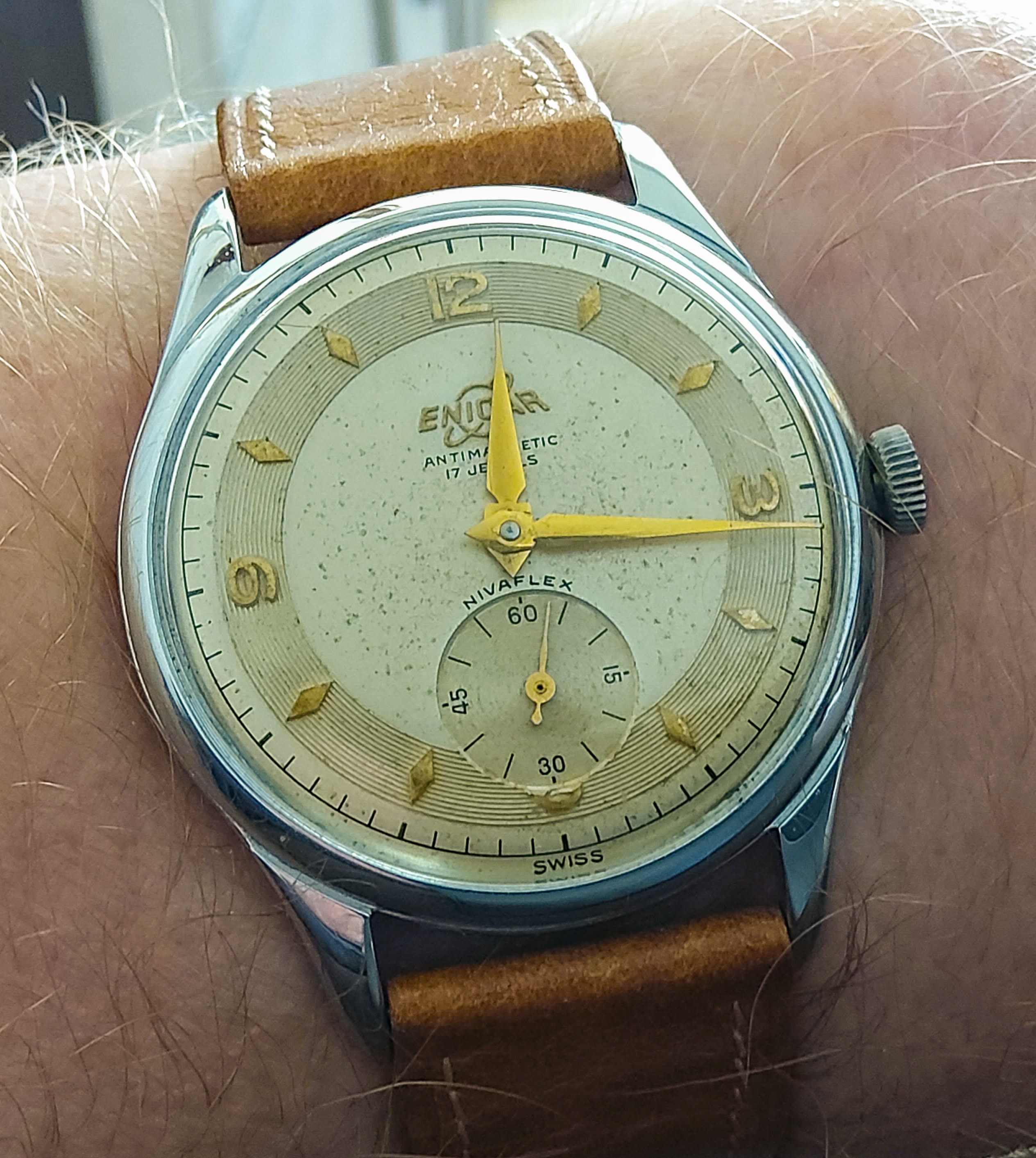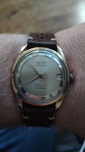In deze tikt uiteraard dan ook een Enicar uurwerkje.