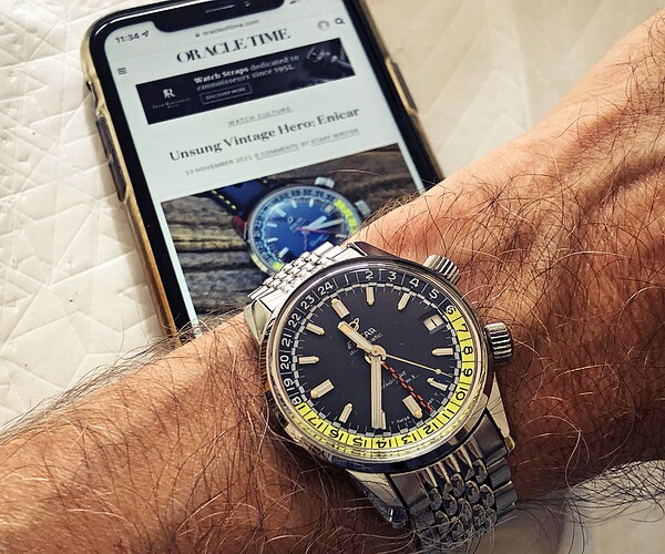Net een Enicar Sherpa Guide in het wild gezien. Wow wat een super gaaf horloge is dat zeg!