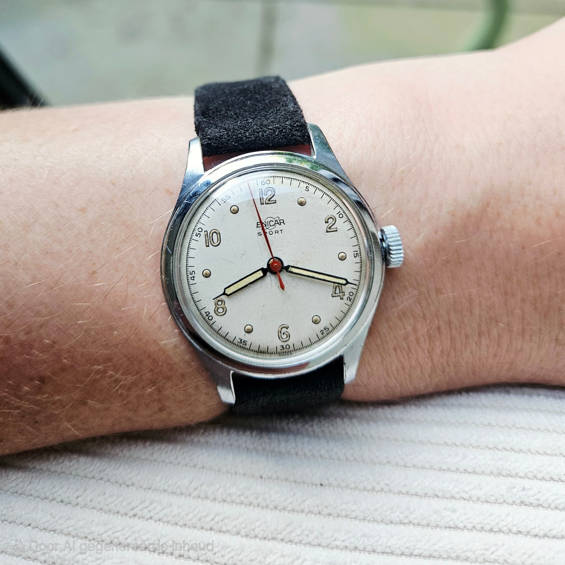 Enicar heeft met de Sherpa serie ook rode secondewijzers gebruikt. Kan zomaar kloppen.