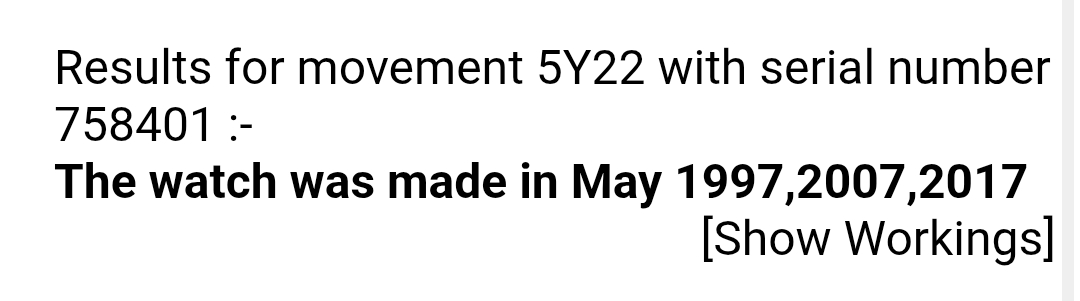 Volgens het oude vertrouwde google is de 5Y22 movement beschikbaar sinds 1988, met het serienummer kom je dan uit op minstens mei 1997.