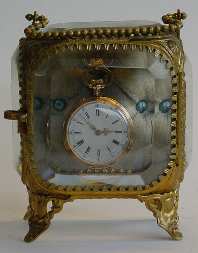 Er zijn vele manieren om een zakhorloge neer te zetten of op te hangen, In het verleden werden daar heel veel modellen voor gemaakt.