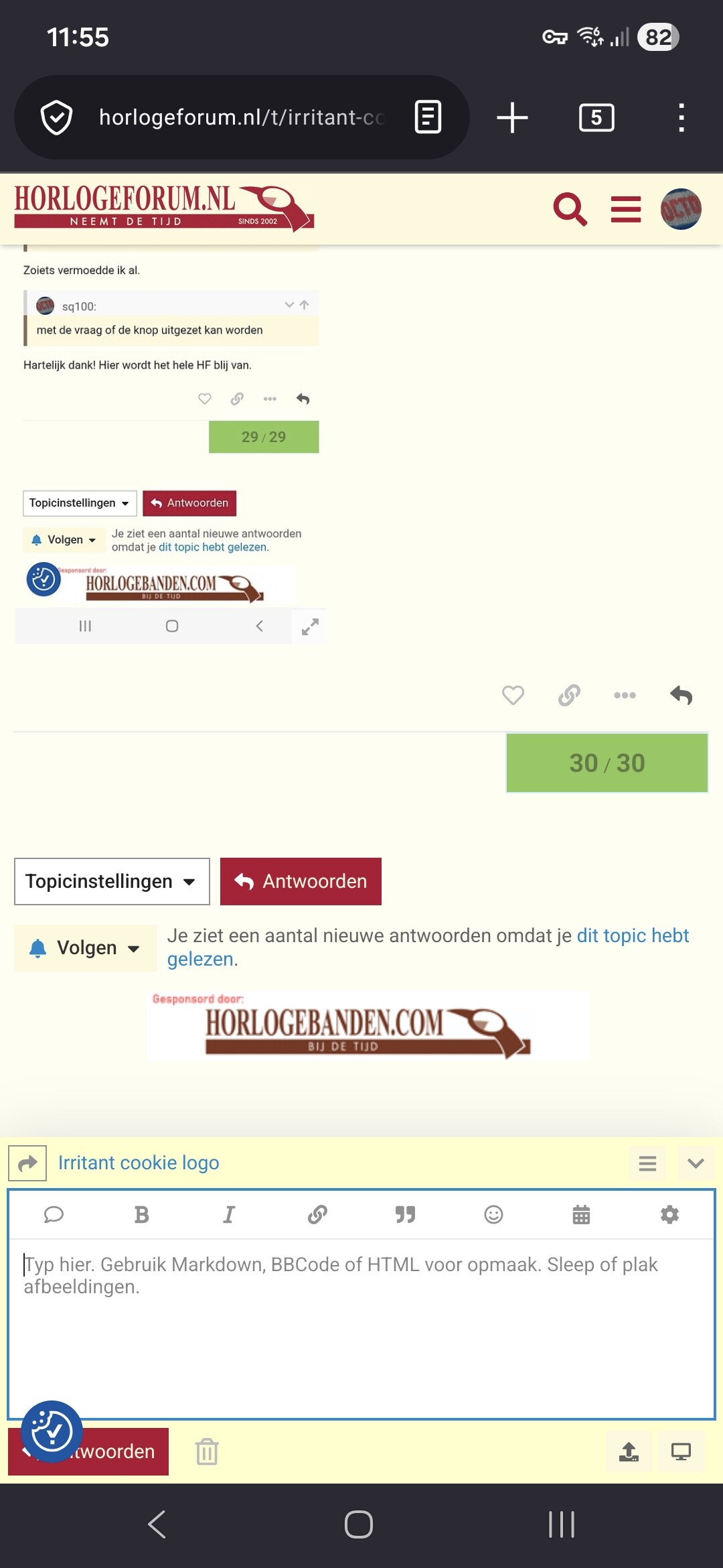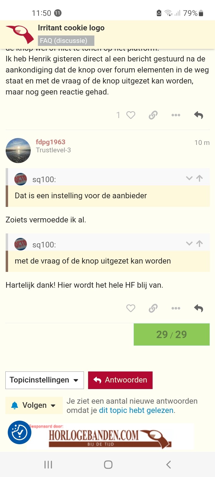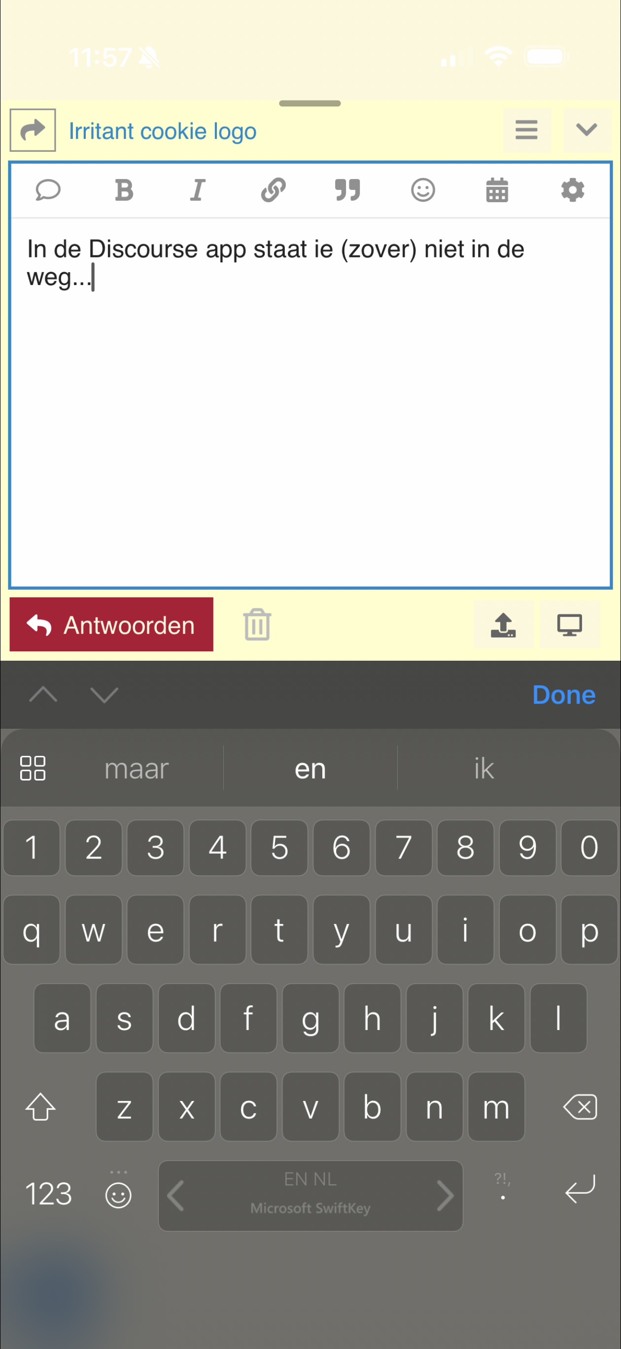 In de Discourse app (iphone) staat ie (zover) niet in de weg…