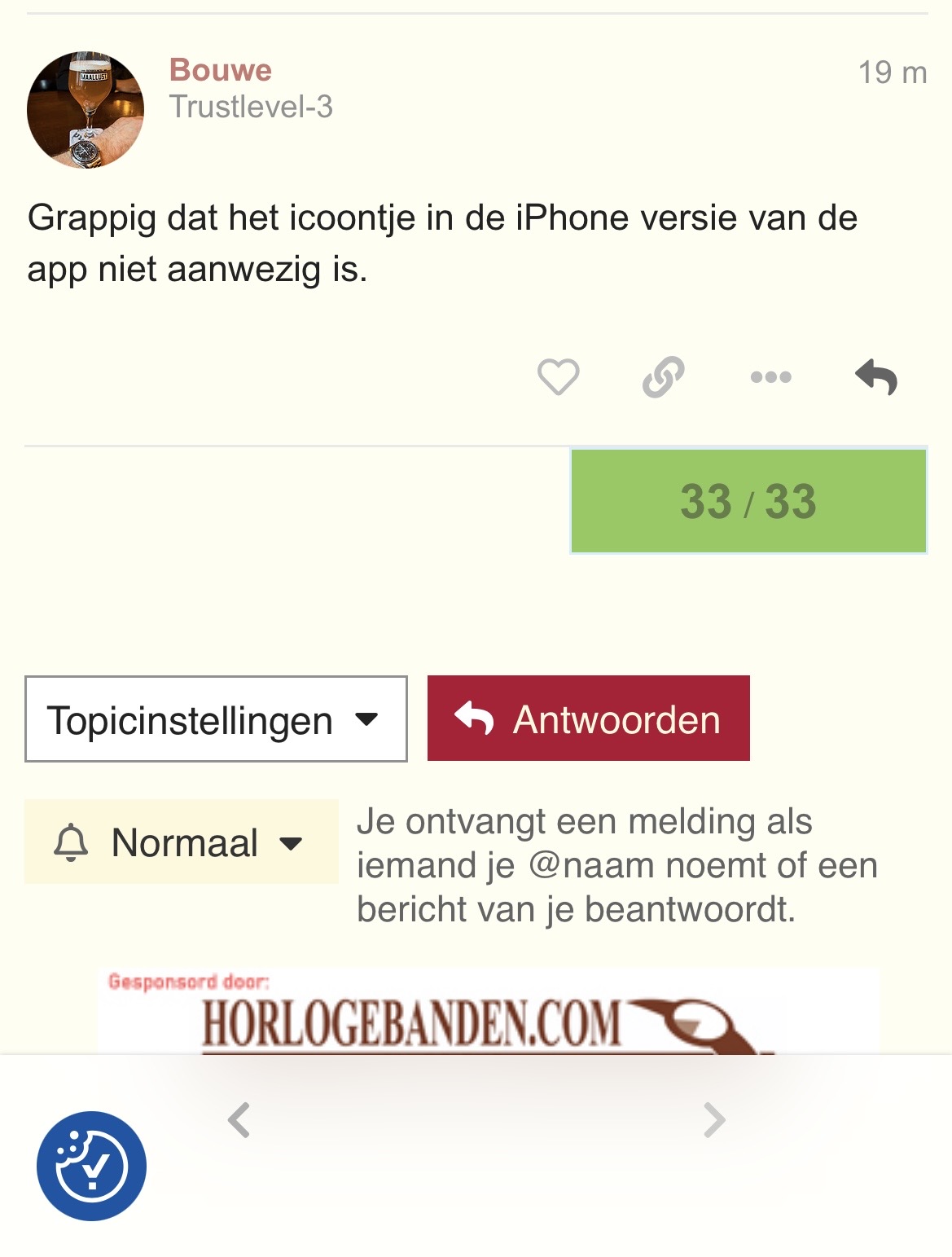 Neuh, niet nodig. Zie het haarscherp. Safari inderdaad wel zichtbaar maar in de Discourse app zelf niet. ![]()