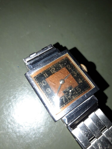 Ik ga toch voor ouder dan dat. Tis volgens mij een frans horloge, geen zwitsers (tout acier maar geen swiss made). Of de plaat origineel is weet ik niet. blijf de foto’s maar matig vinden.