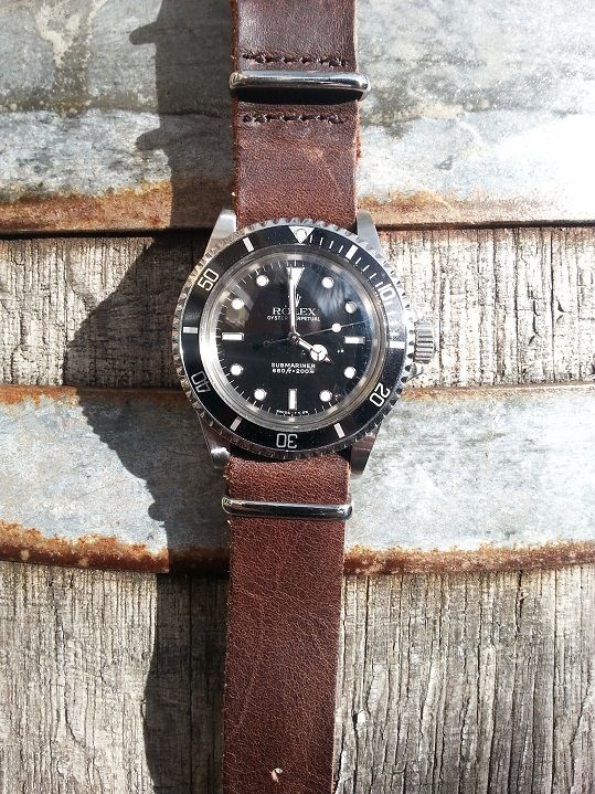 Vind dit soort leren banden veel te grof voor een Rolex. Eerder iets voor een Panerai. Ergo, de stalen band.