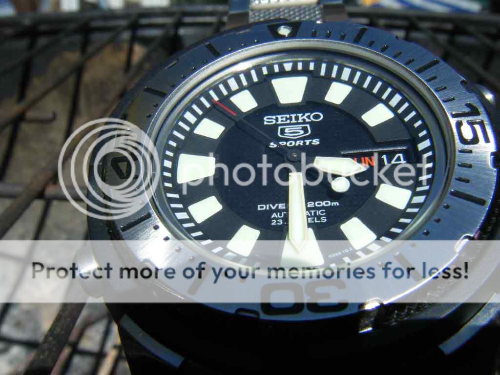 Nu nog een horloge, zo nieuw dat ik er niet eens een foto van heb: Seiko SKX009 met een razor-band van Rob. En een aparte mod: een versleten bezel inlay. Ik vind de nieuwe niet mooi!