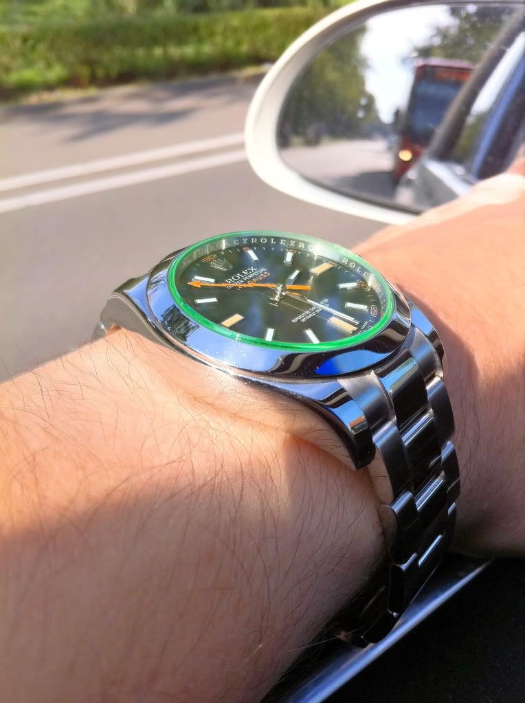 Vandaag ga ik de Rolex Milgauss weer eens om de pols doen, vooral erg mooi als het zonnetje er voor zorgt dat het groene saffierkristal helder oplicht!