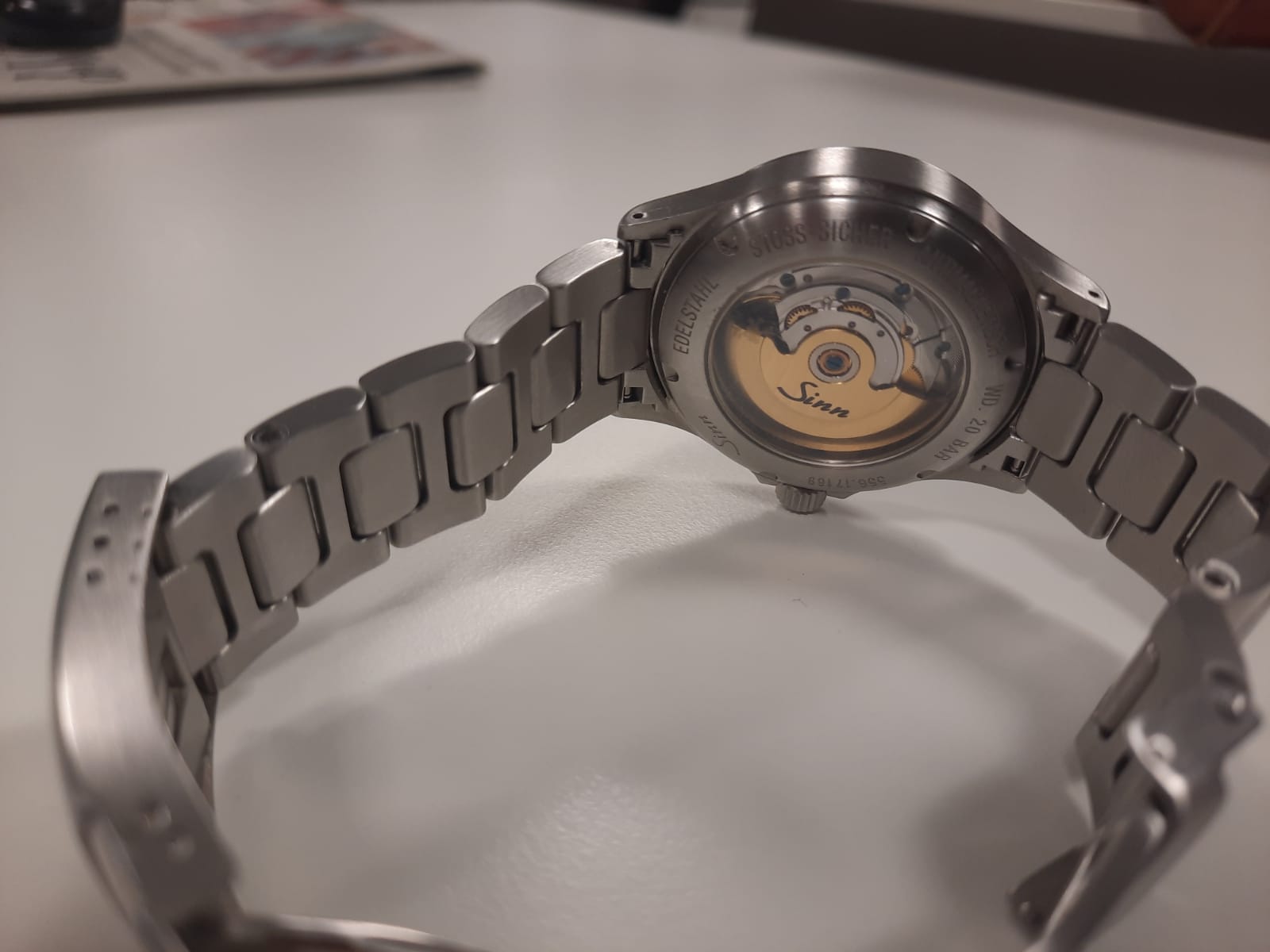En dus volgde daar een week geleden een gezocht-topic. Gek genoeg kreeg ik daarop een reactie dat er op het forum nog een te koop stond. Dezelfde Sinn die ikzelf al een aantal maanden eerder getipt had aan iemand anders die ernaar op zoek was. Contact opgenomen met @Paljas en een afspraak om het horloge even te bezichtigen was snel gemaakt. Vanwege een kleine oneffenheid op de kast wilde ik eerst even kijken.