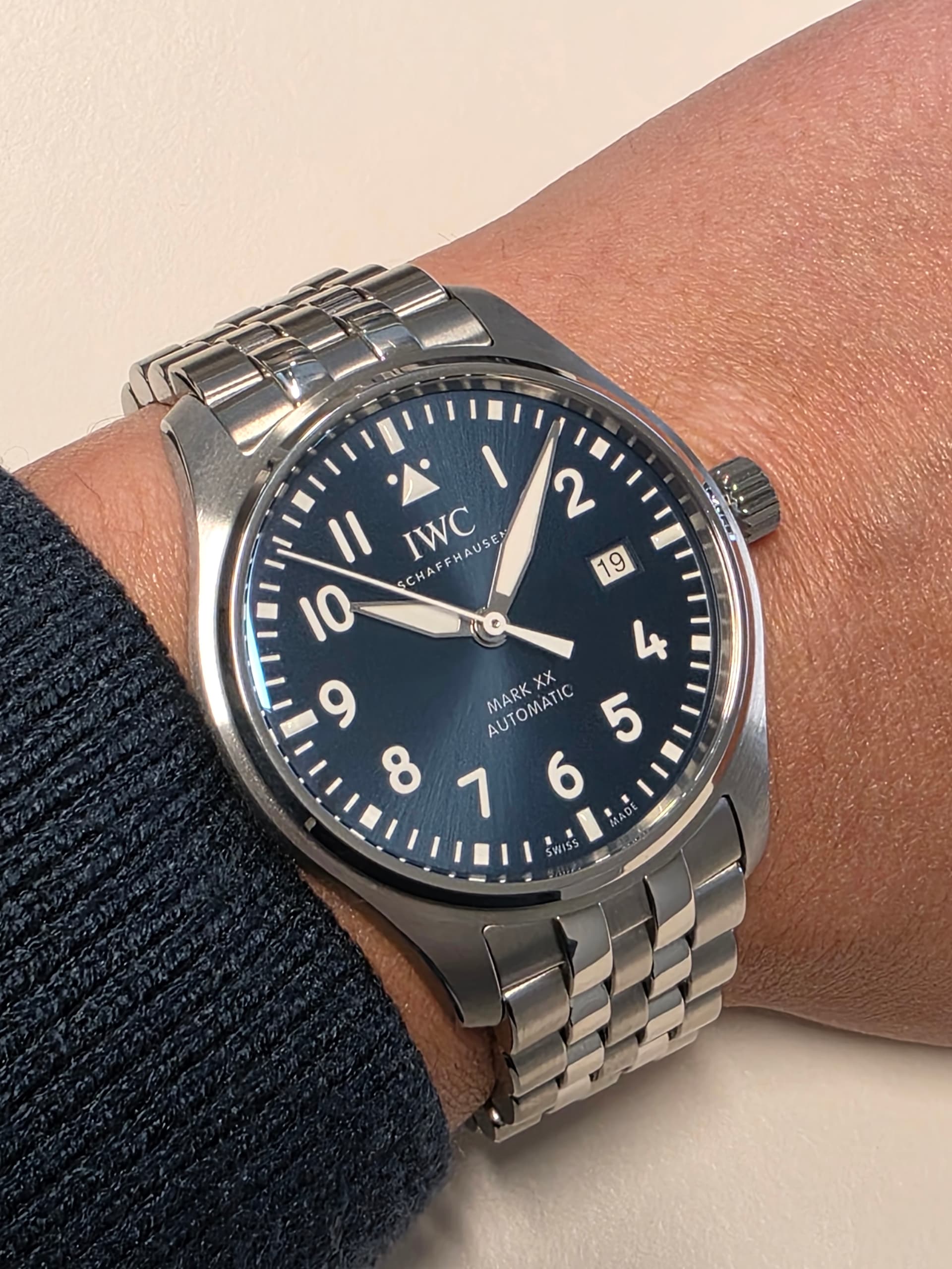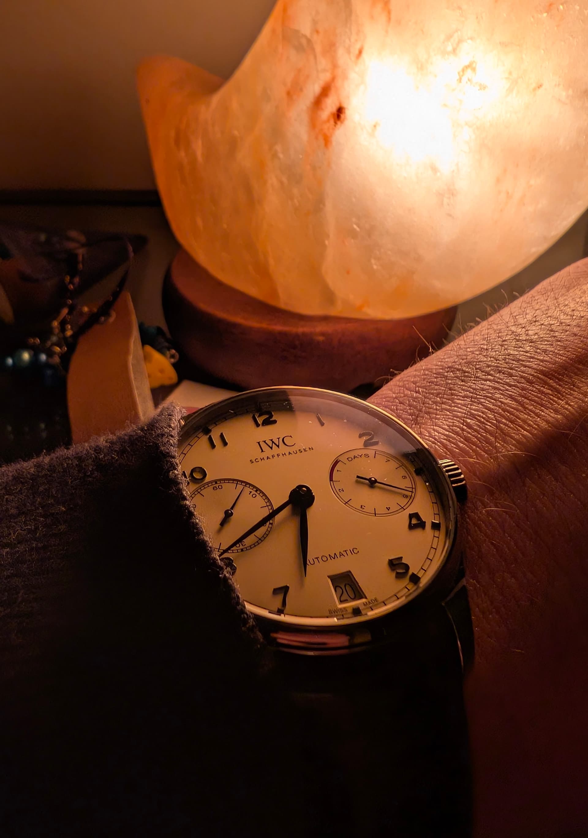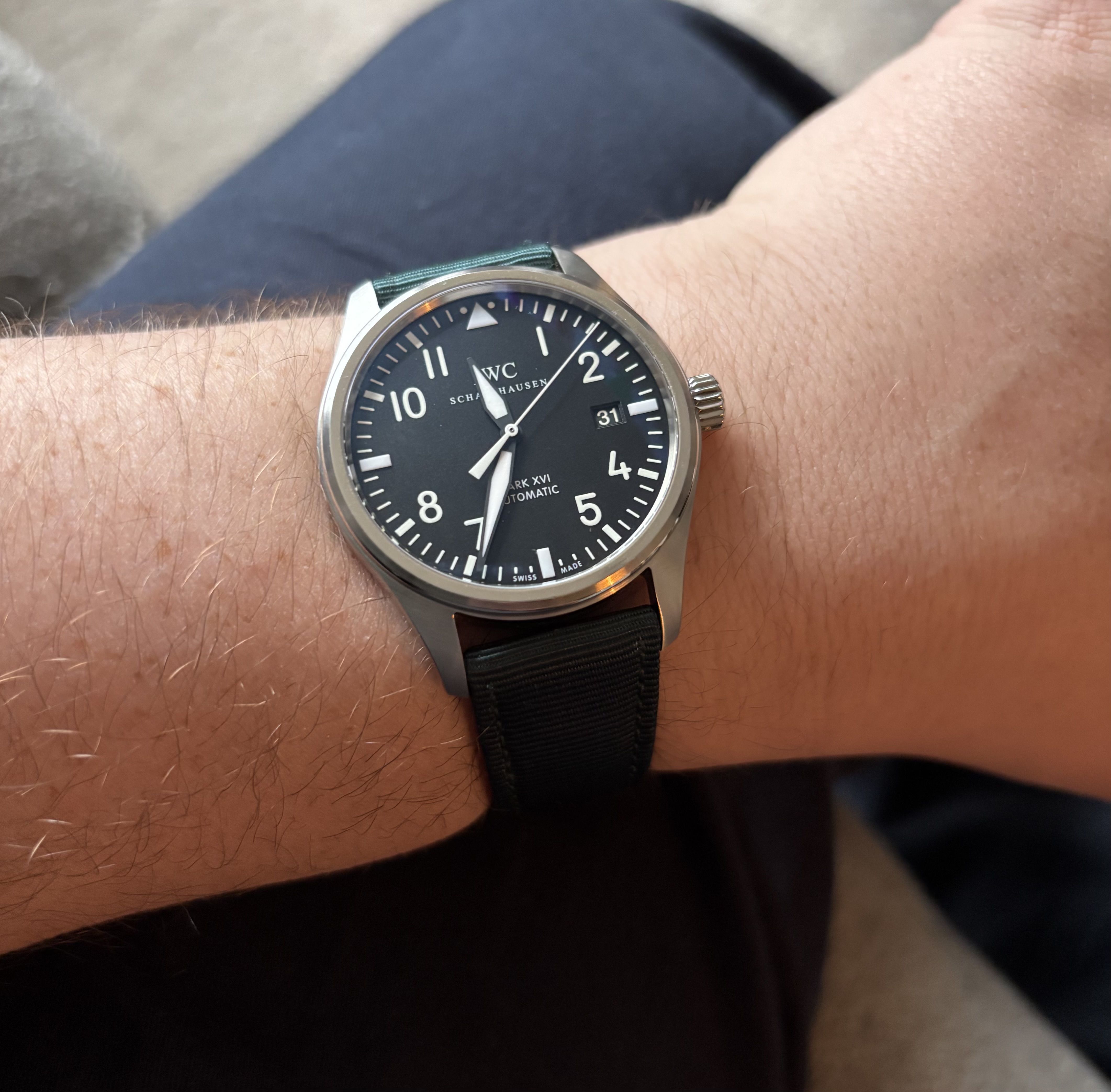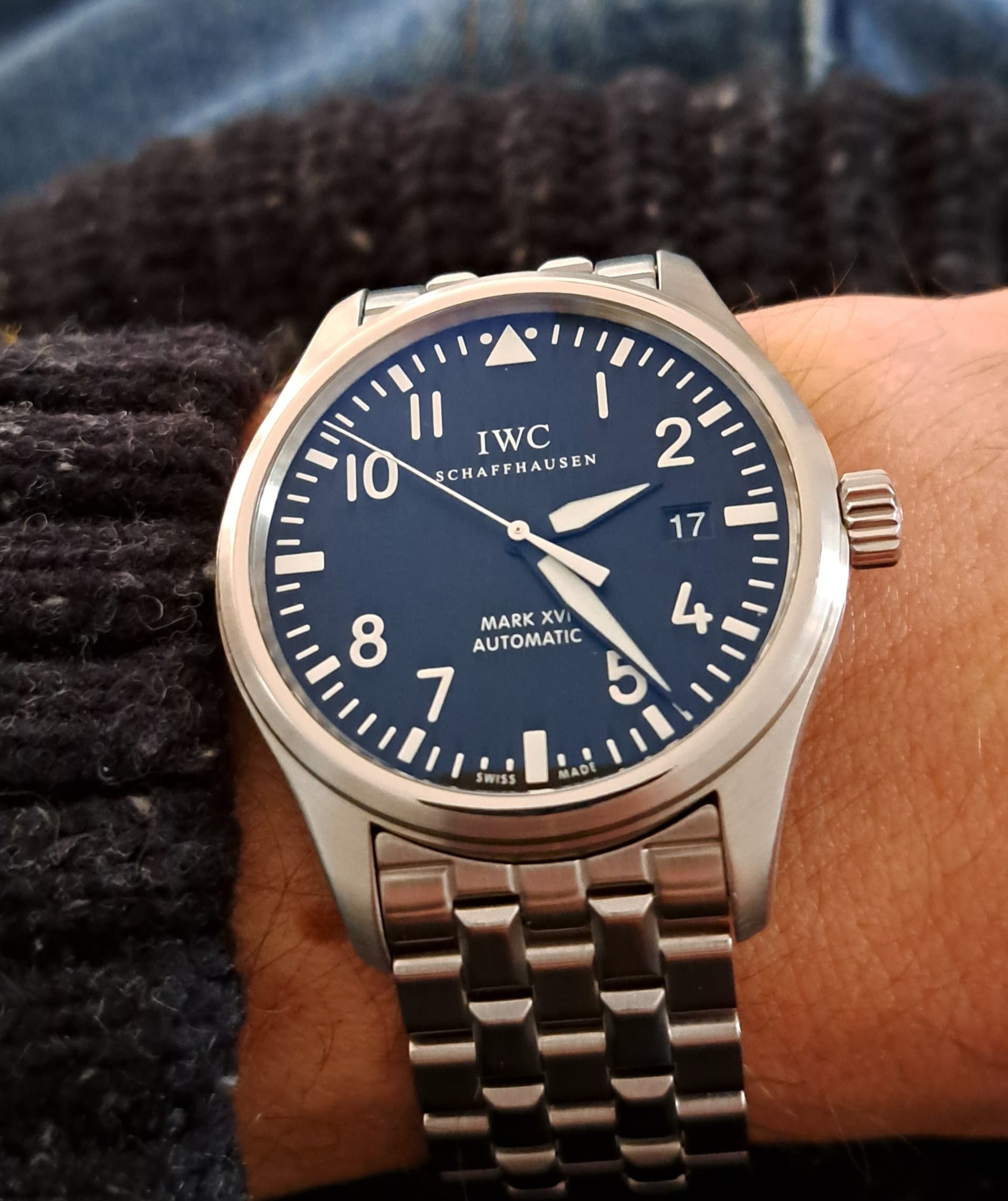 Voor de broodnodige afwisseling zoek ik nog een tweede strap. Bij voorkeur origineel maar de keuze bij IWC is helaas redelijk beperkt. Wellicht de blauwe rubberband van de chrono. Ik houd niet van een stalen band.