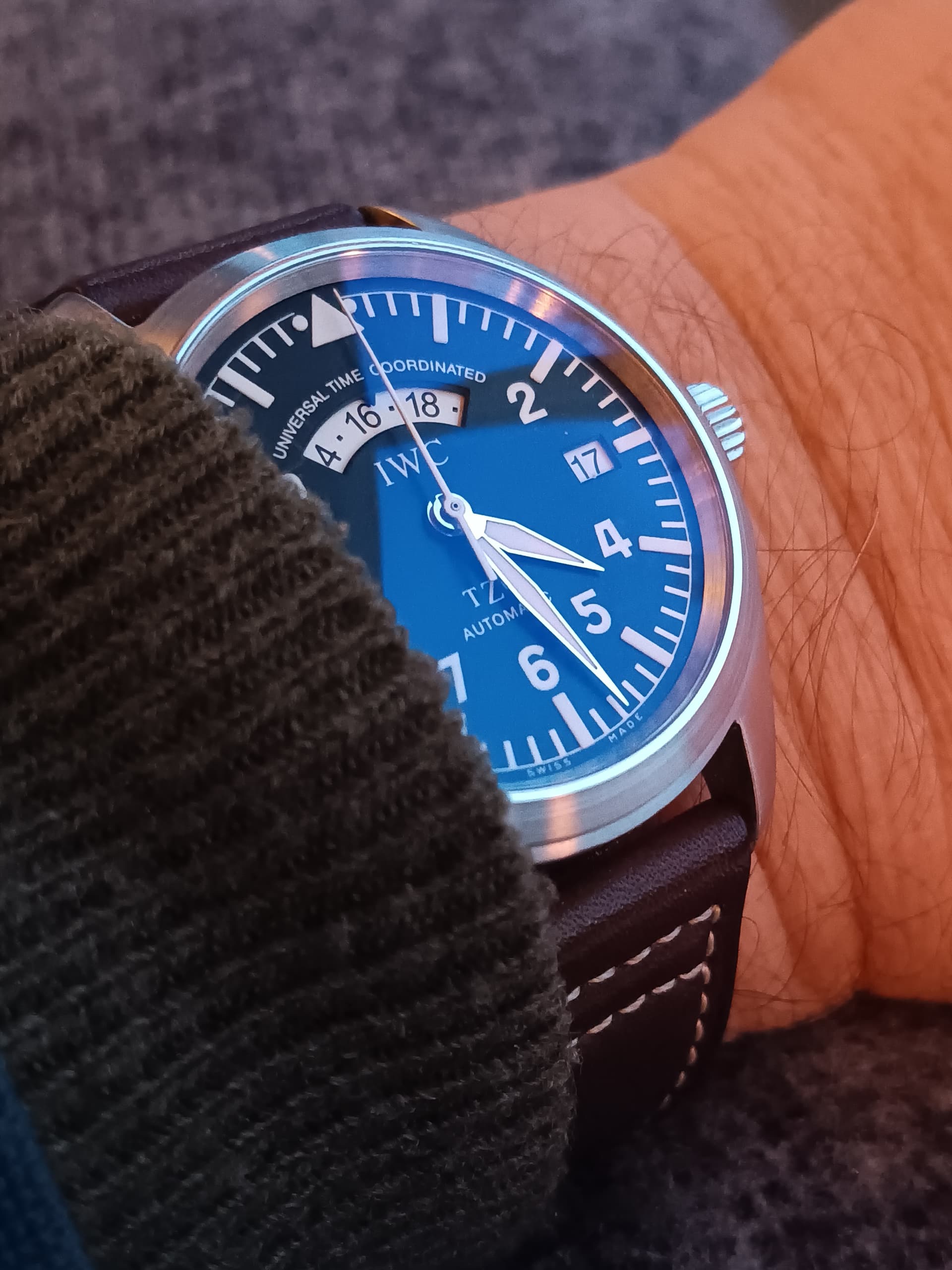 Is voor mij ook een dooddoener op blauwe horloges. Dat paars komt vooral naar boven onder led-verlichting.