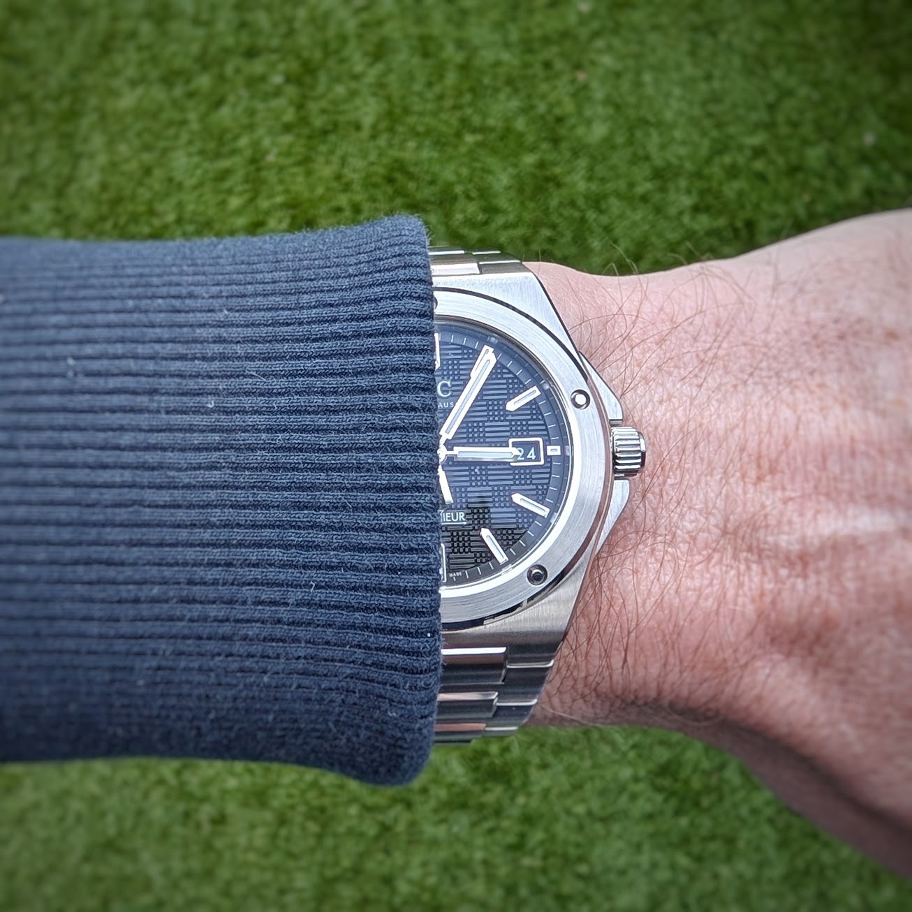 En de enige foto waar het horloge daadwerkelijk om de pols zit is dan weer een bijzonder matige foto ![]()