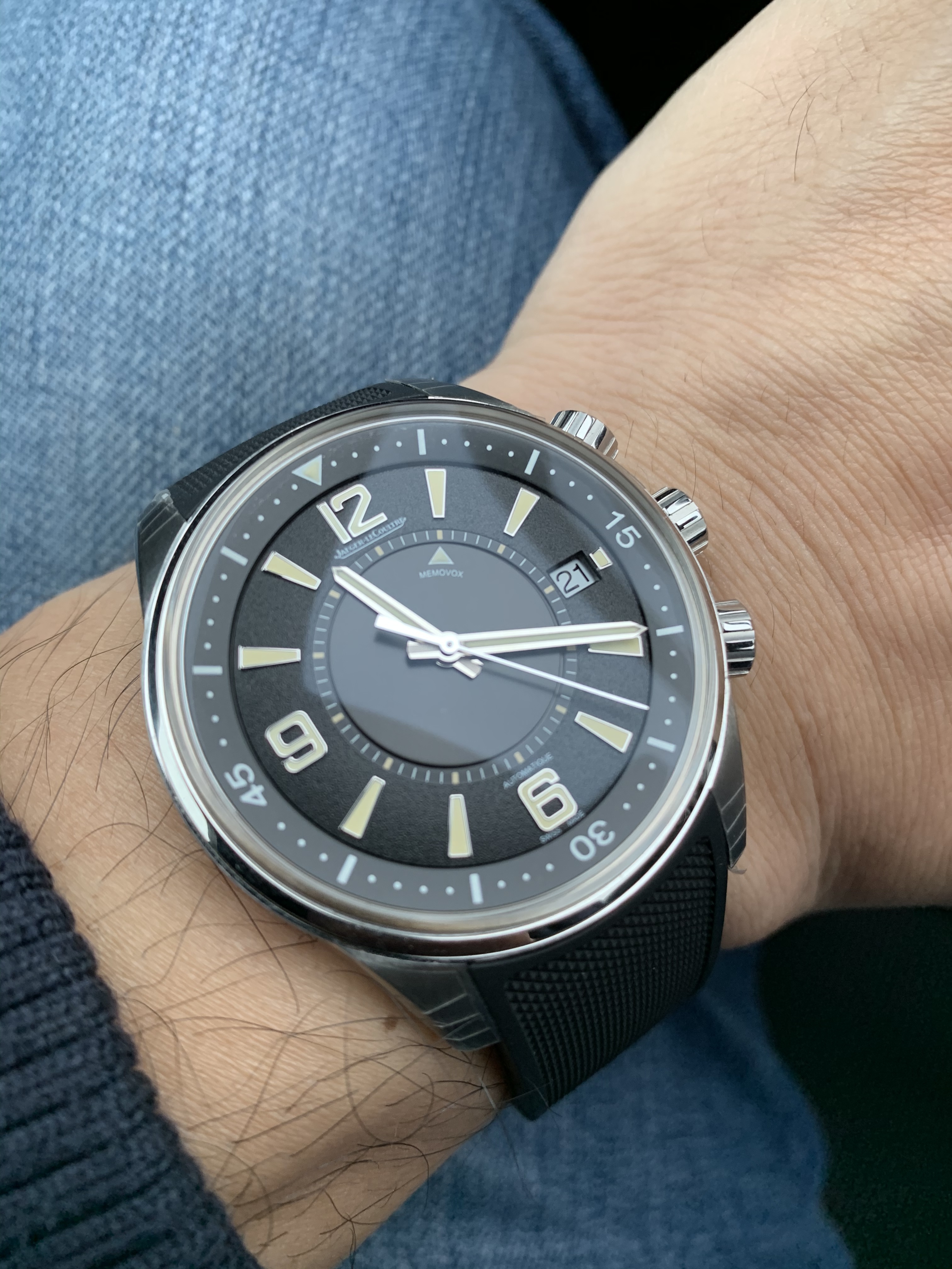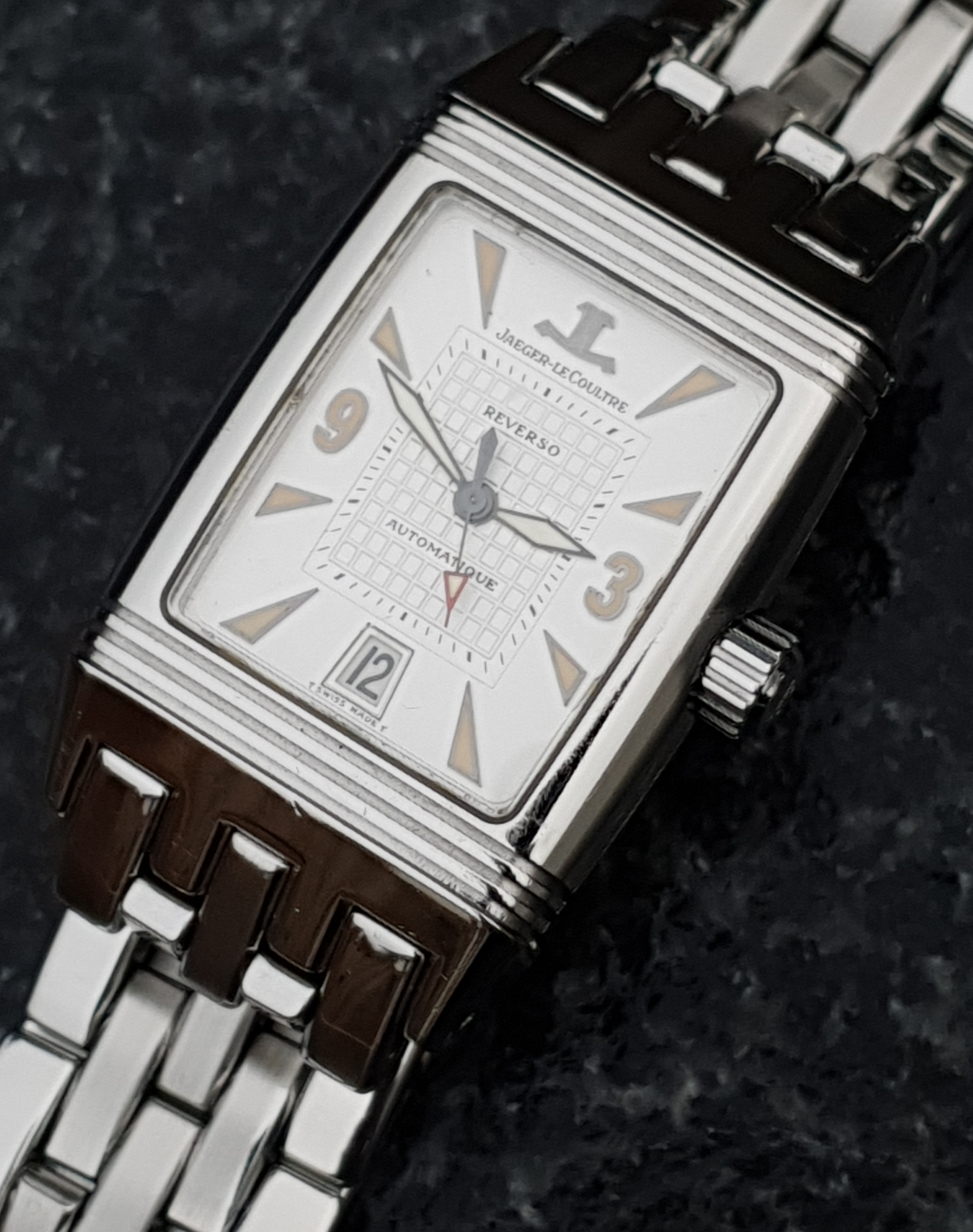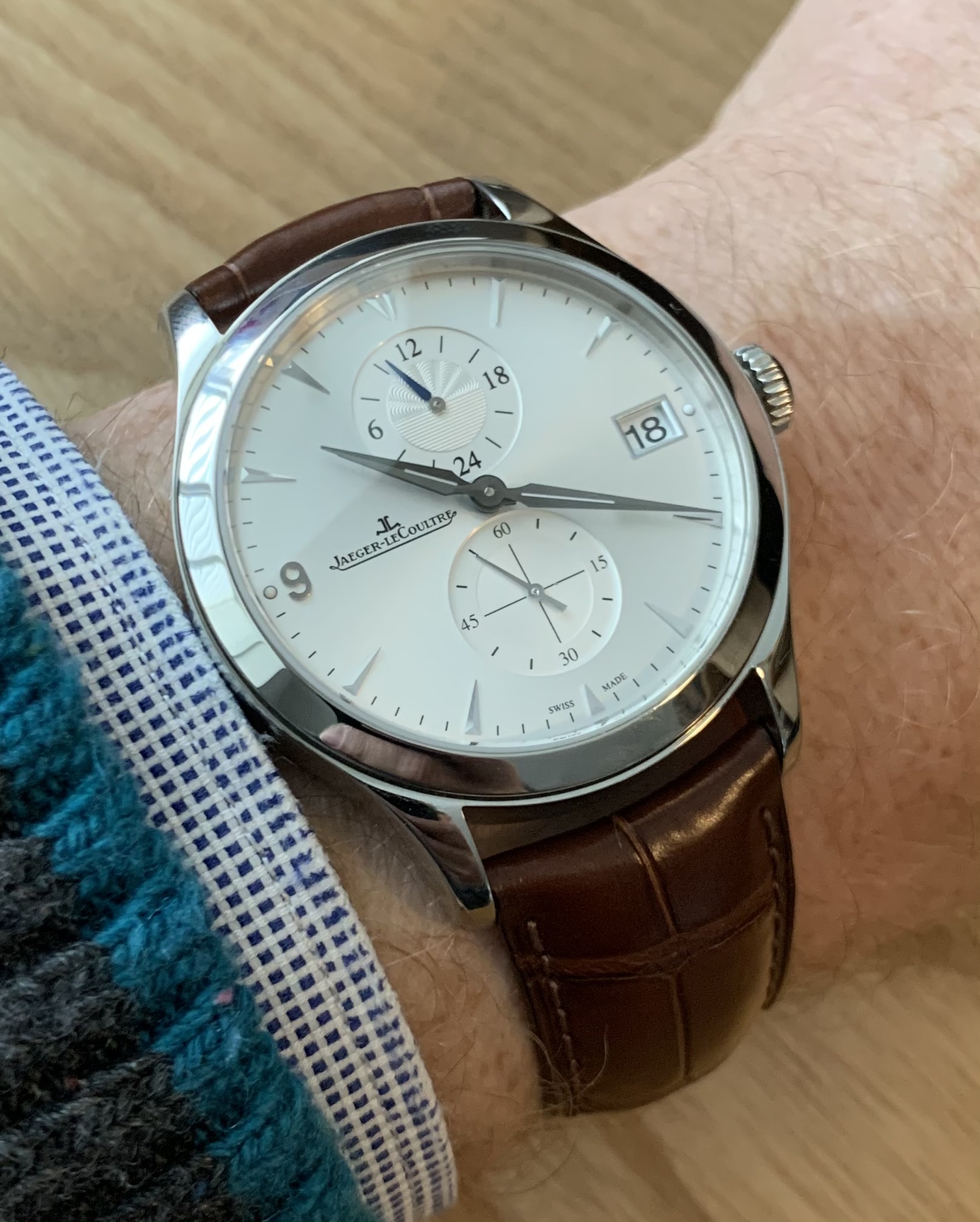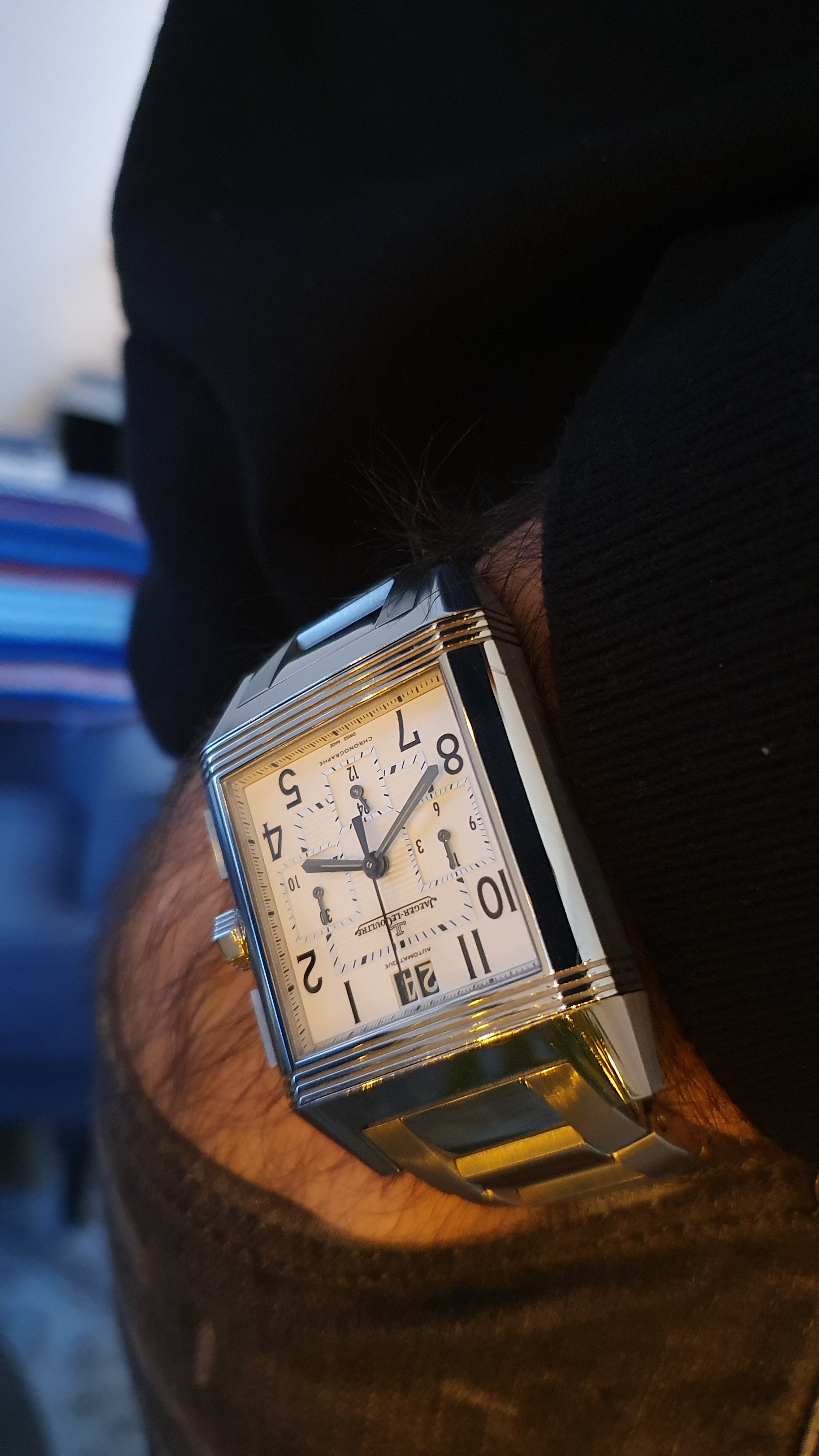Foto van een aantal dagen geleden, sorry. Ik ga 'm houden en het horloge is al terug getrokken uit de verkoop. Het is voor mij een sympathiek merk, wordt zelden herkend (buiten in het wild) en zo’n Reverso is een lekkere afwisseling tussen alle ronde horloges.
