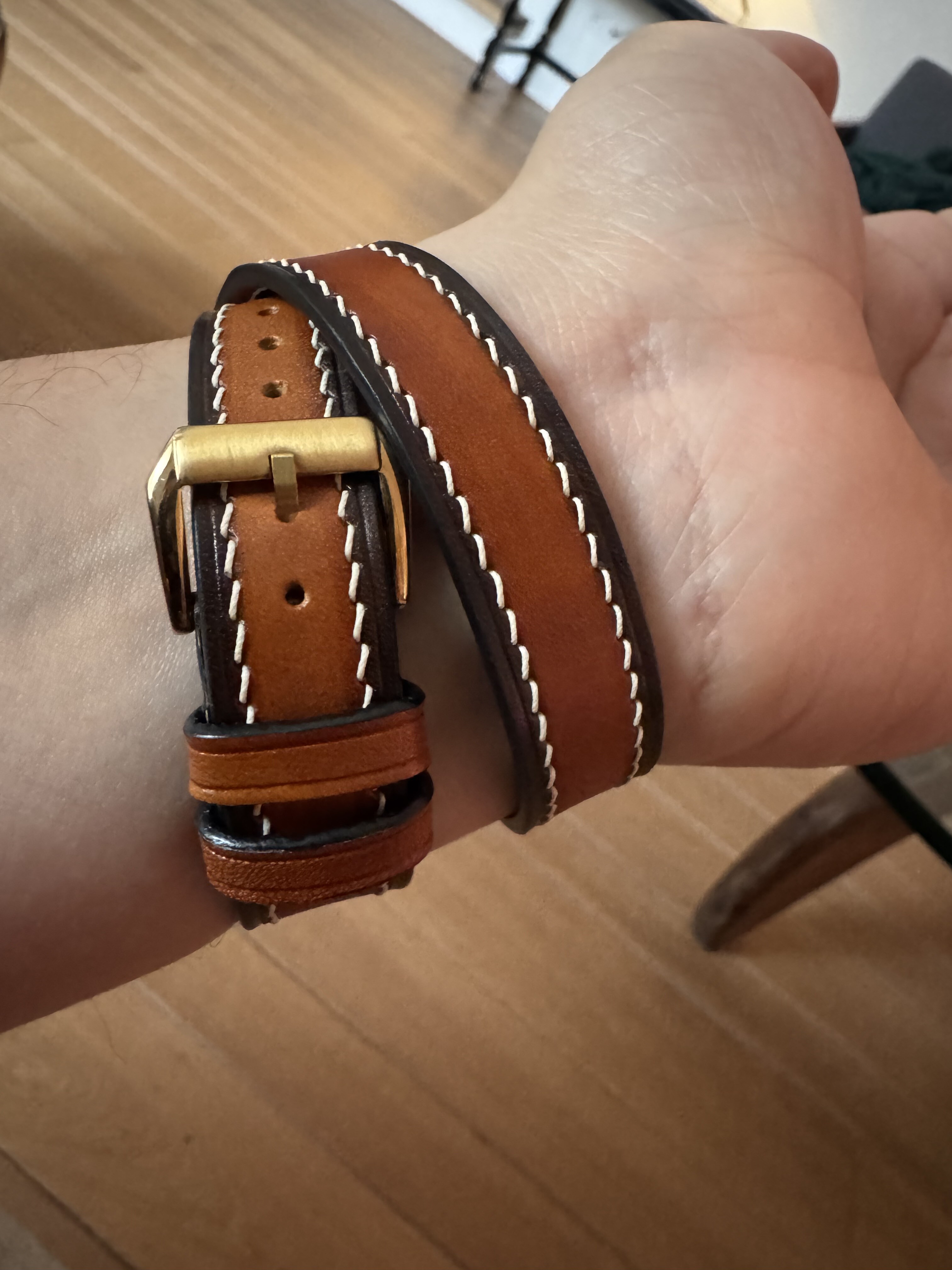 Double tour bandje laten maken. Iets meer de stijl van een armband ipv een horloge.