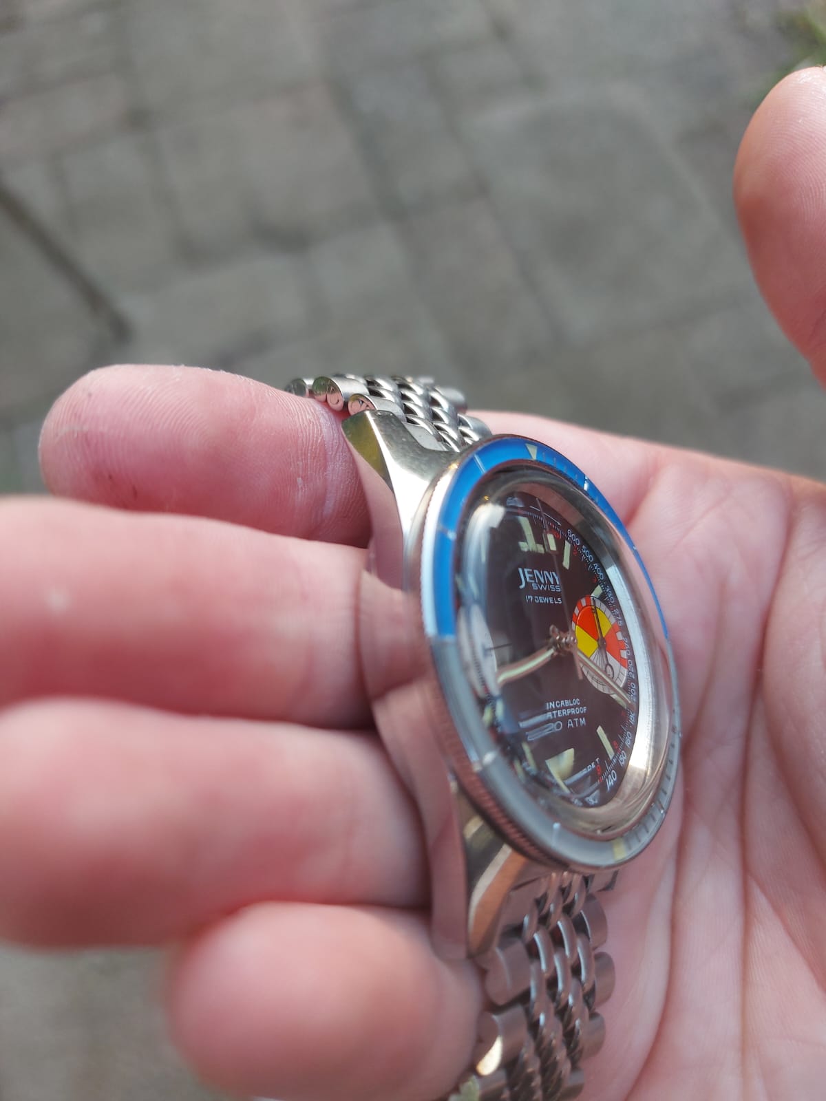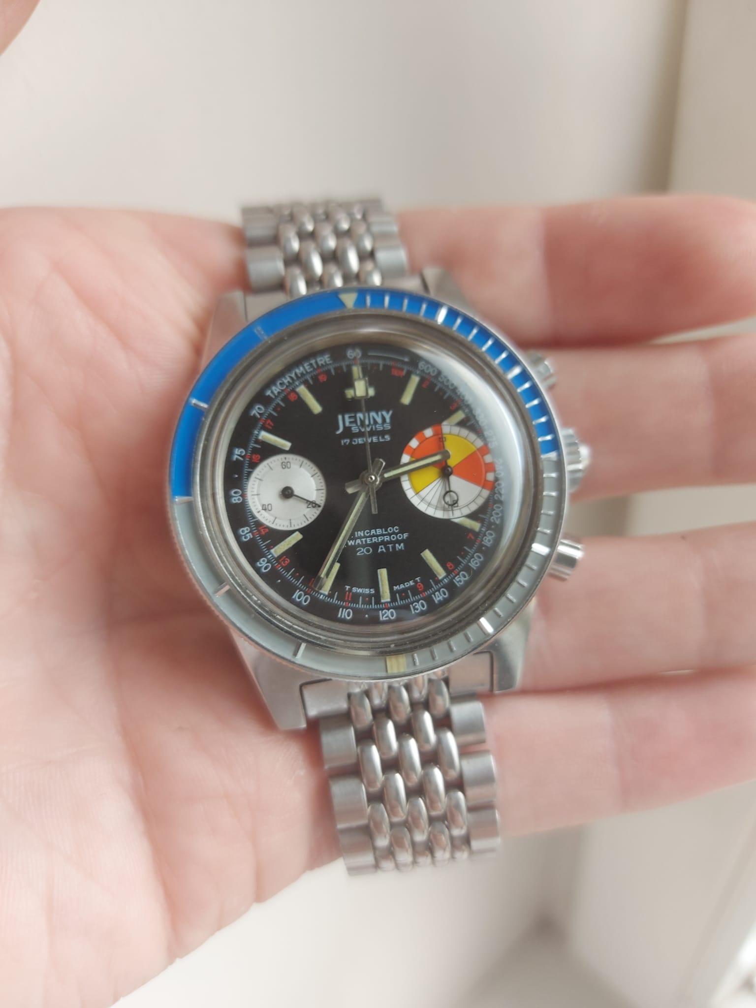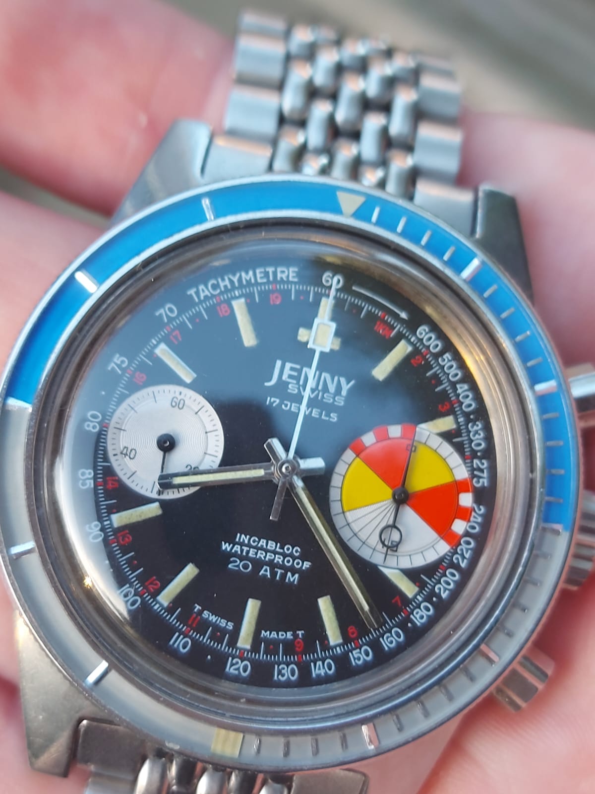 Mijn mooie zeldzame Jenny Caribbean Big Eye Yachting-chrono in perfecte staat.