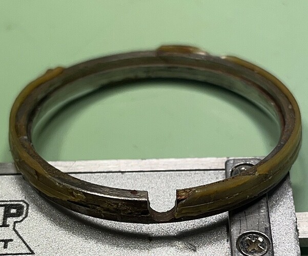 Het hars om de stalen ring is hard dit zou gewoon van staal kunnen