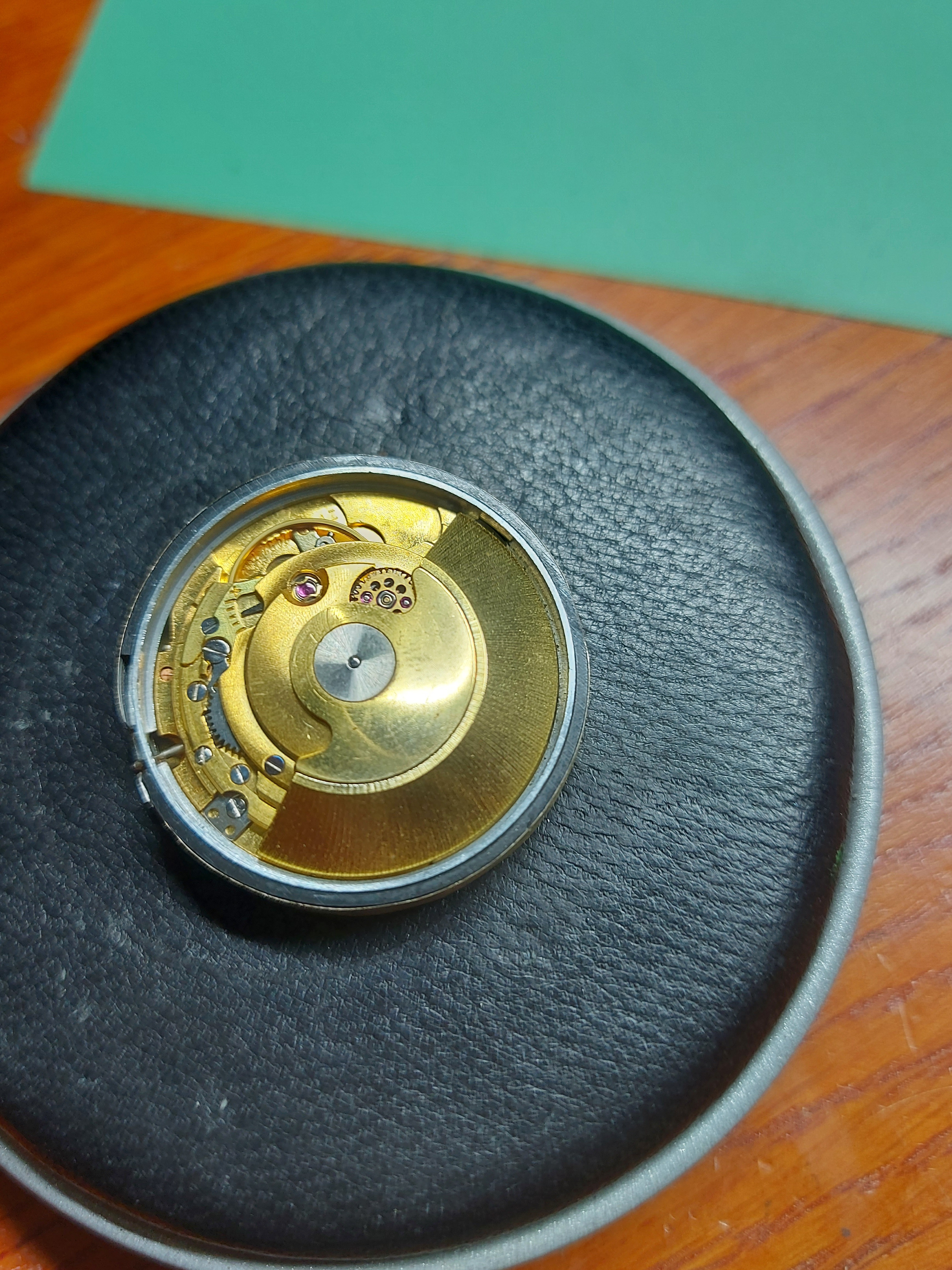 Deze foto zitten de wijzerplaat en wijzers niet gemonteerd