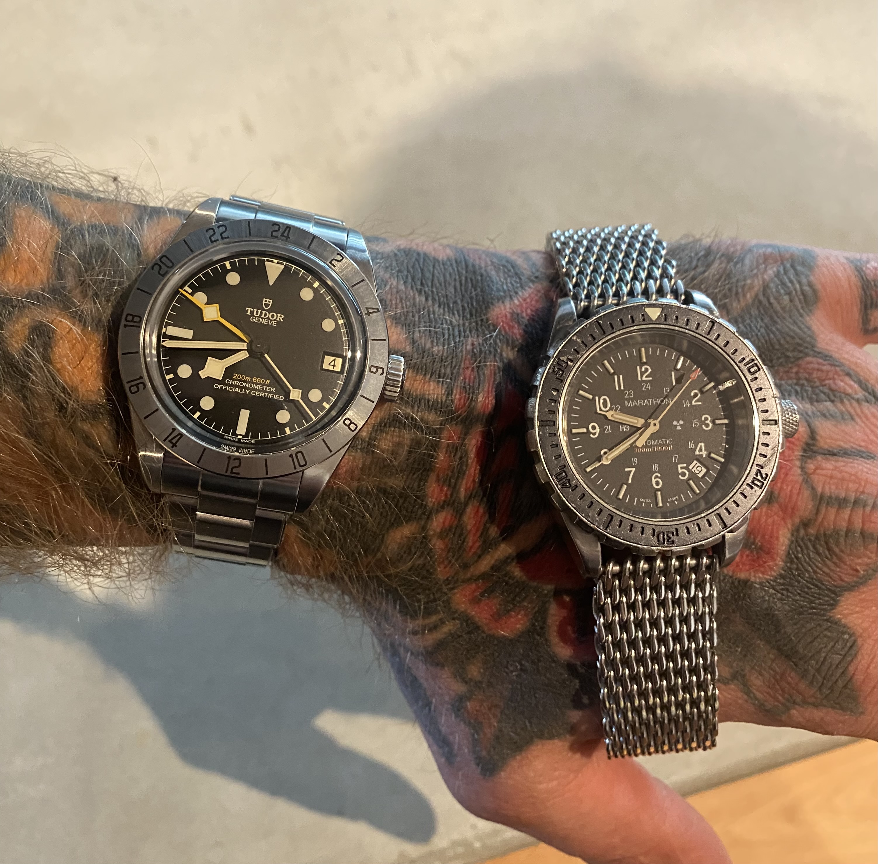 De Yema Superman is een uitzondering. Die draagt goed op NATO, maar zeer zeker ook op heel veel leren banden, en op z’n eigen rammelbracelet, met grote taper. Dat is charmant, dat droeg ik graag. Dat was direct ook het horloge wat ik weg deed omdat deze Marinemaster zou komen.