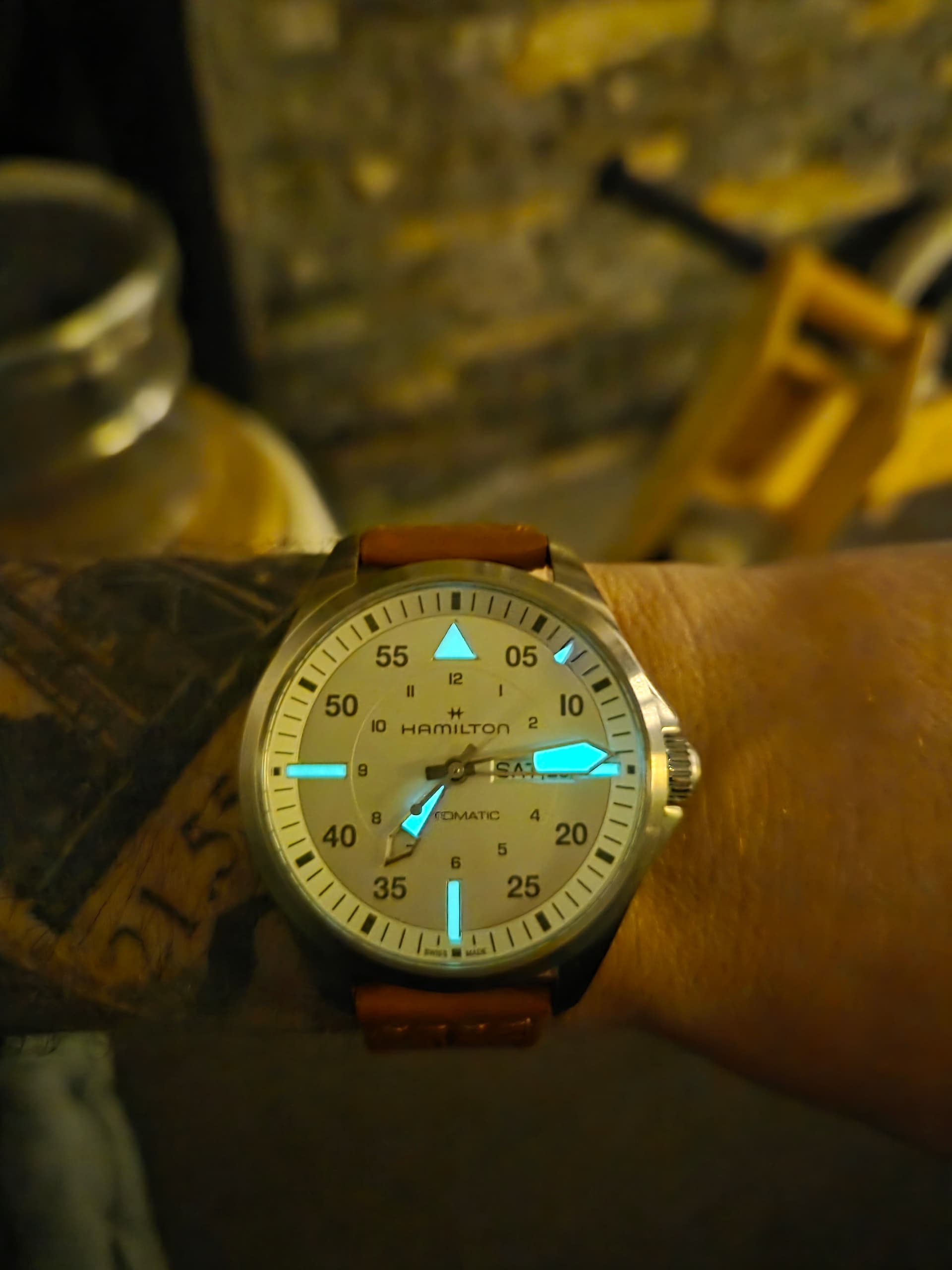 Ja, voor mij is dat dus part of the fun. Ik ga er even rustig voor zitten. Schud een paar keer en geef de kroon meestal een paar draaitjes. Dan de tijdsapp erbij even op tijd en (indien van toepassing) juiste datum zetten. Kroon dicht, om de pols en ready to go.