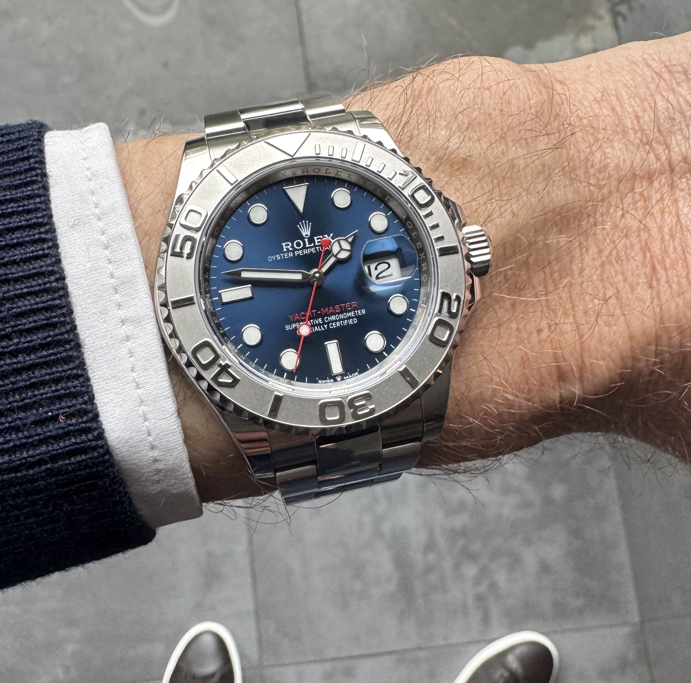 Bij mij is de Yachtmaster ook de laatste aanwinst, hier op de foto met de 2 enige aanwinsten uit 2025. Waarvan de Doppelchronograph eventueel nog weg mag, maar als ‘ie blijft is het ook prima.