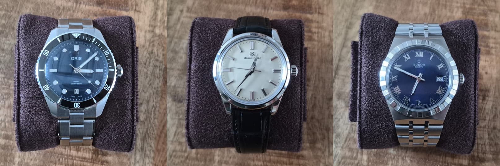 Dit is de huidige stand van zaken. De Tudor heb ik een week gedragen, maar is helaas geen blijver en komt binnenkort in het blauw. Als iemand interesse heeft: stuur gerust een PM. Ik beloof geen UPS te gebruiken bij het verzenden