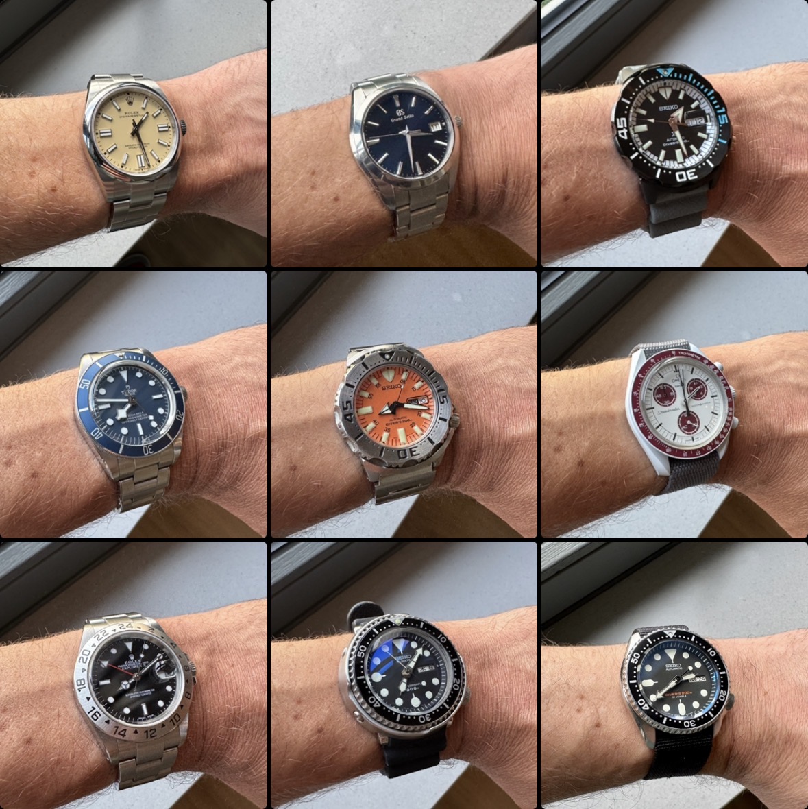 Wat een fantastische, gebalanceerde maar toch avontuurlijke collectie! Prachtig verloop van de beide stijlvolle Omega’s tot aan de 's zomerse Doxa en rauwe CWC!