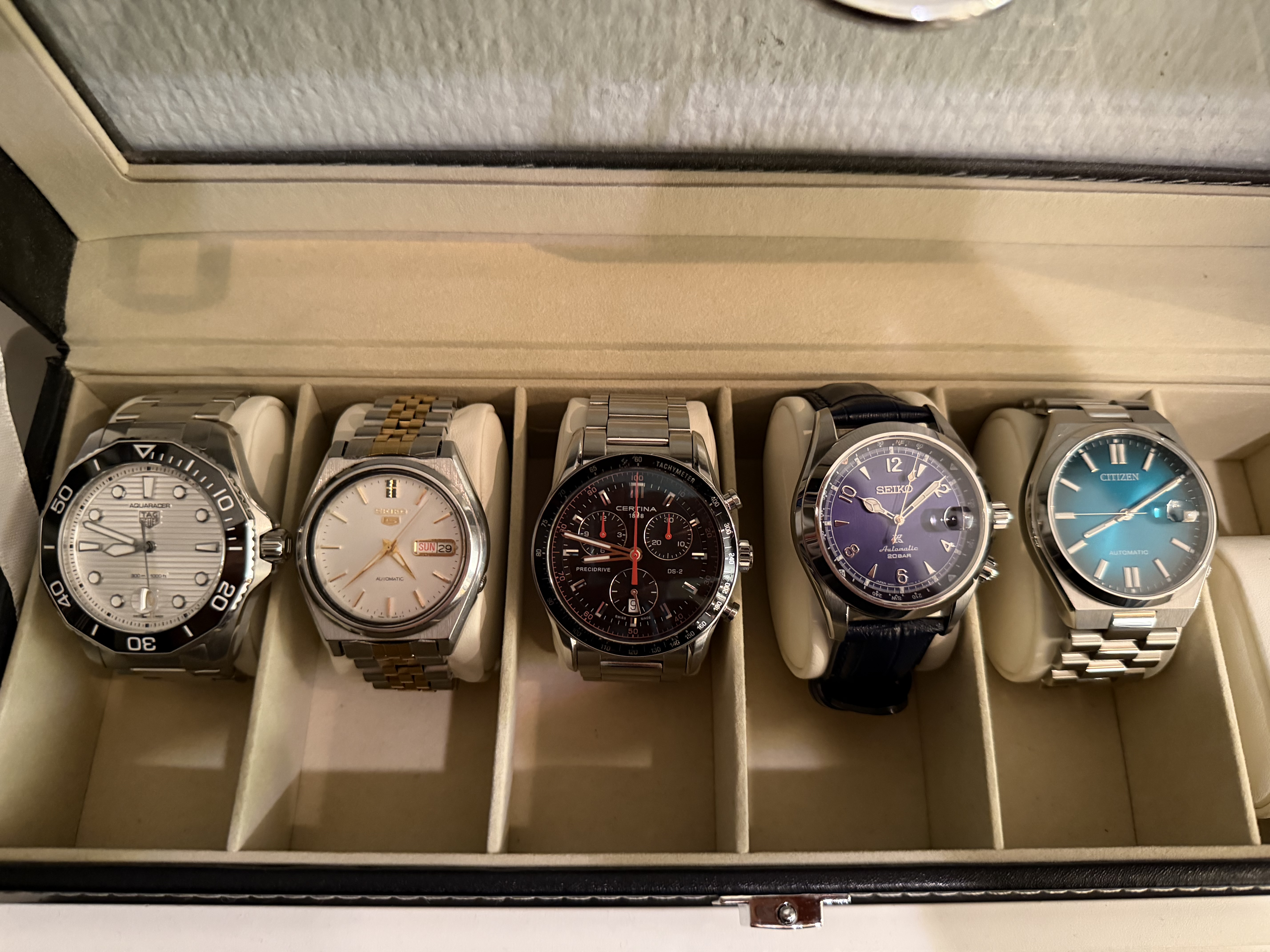 Paar kleine aanwinsten er weer bij de afgelopen tijd. Ik denk dat er binnenkort wat horloges moeten gaan, want ik aas echt al een tijdje op een serieuze Patek dresser. De collectie zal daardoor wel drastisch kleiner worden vermoed ik. Ik heb echter al de nodige dressers en zodra er een patek komt denk ik dat de andere dresser nauwelijks nog gedragen zullen worden.