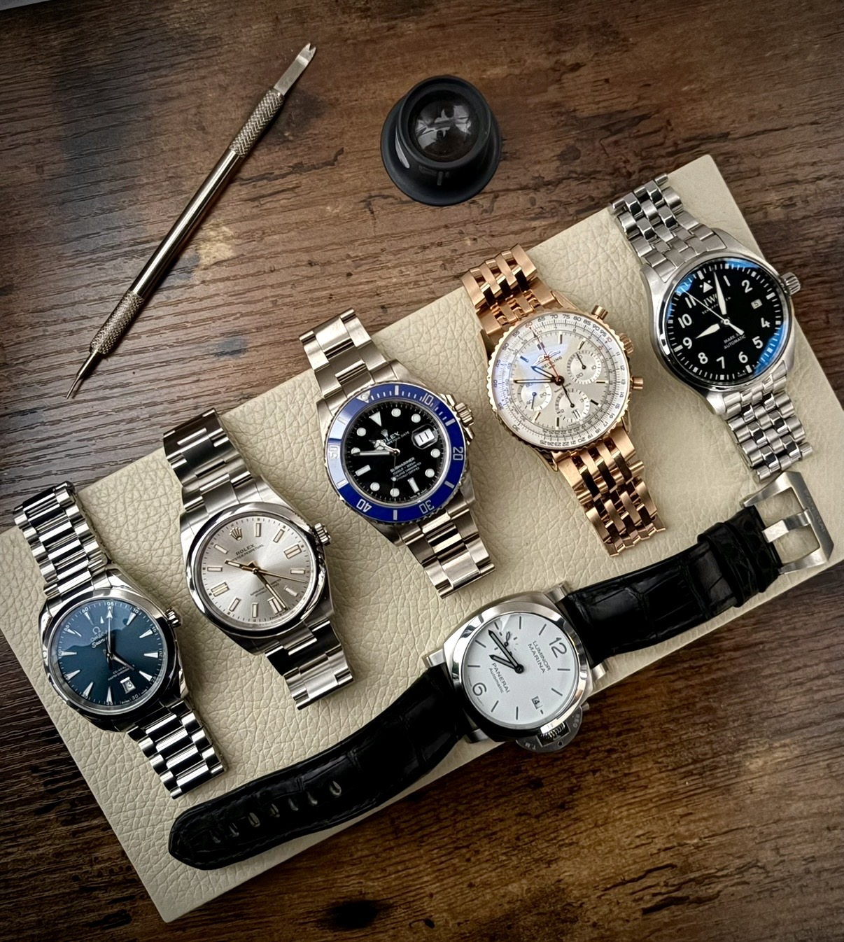 Prachtige set zo - hier zou ik niks meer aan doen denk ik. Heel misschien een andere plaat in de Panerai, want donkere platen swappen makkelijker bandjes heb ik het idee. Maar wat een collect Boetje!